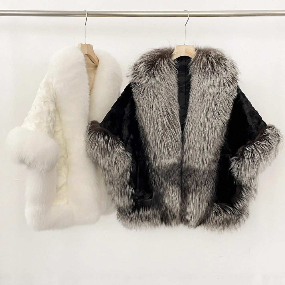 贵气狐狸毛斗篷25冬新款皮草外套女短款进口保暖水貂拼貂披肩貂皮