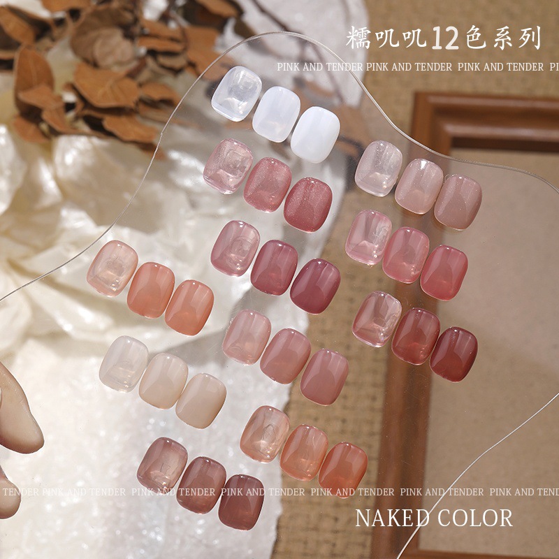 美甲糯叽叽アイス透明ヌードカラーネイルジェル2026年新作トレンド白開水風ファンファンベースヌードピンク