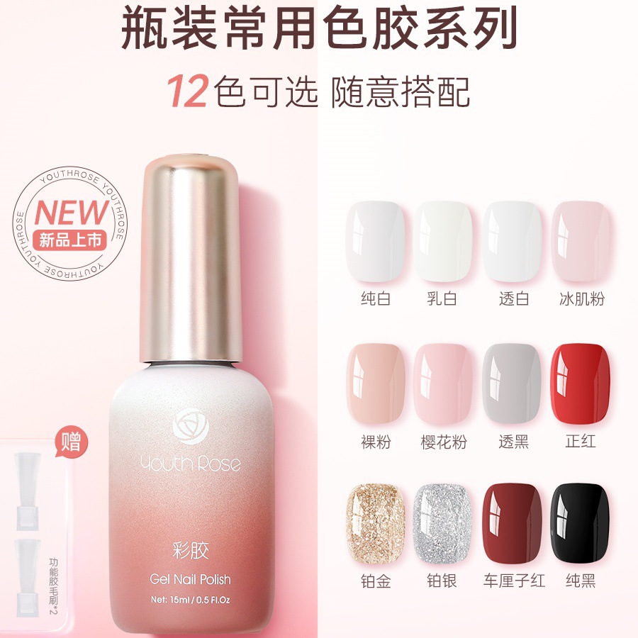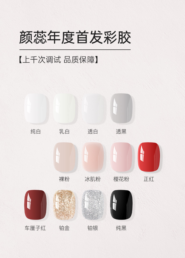 颜蕊彩色甲油胶车厘子红乳白透黑裸粉樱花粉冰肌粉网红流行色显白