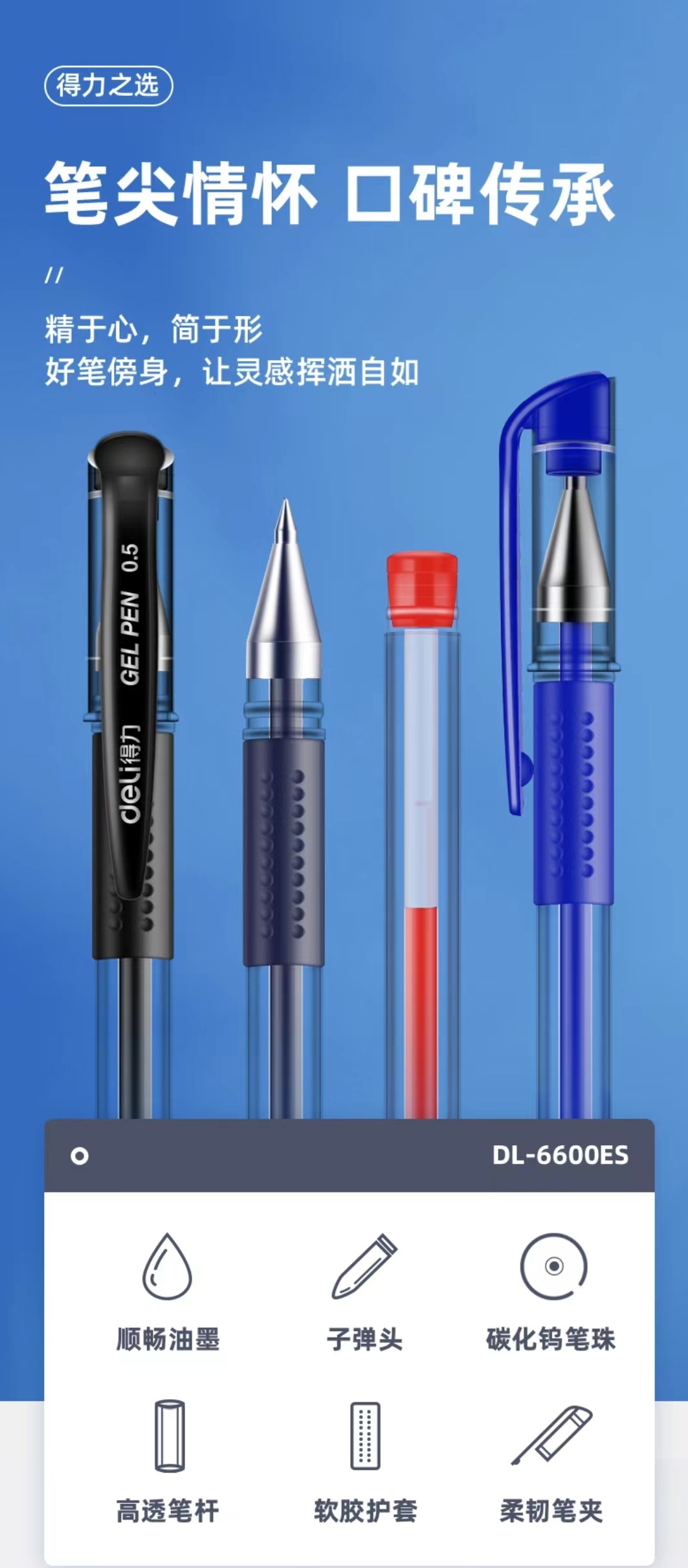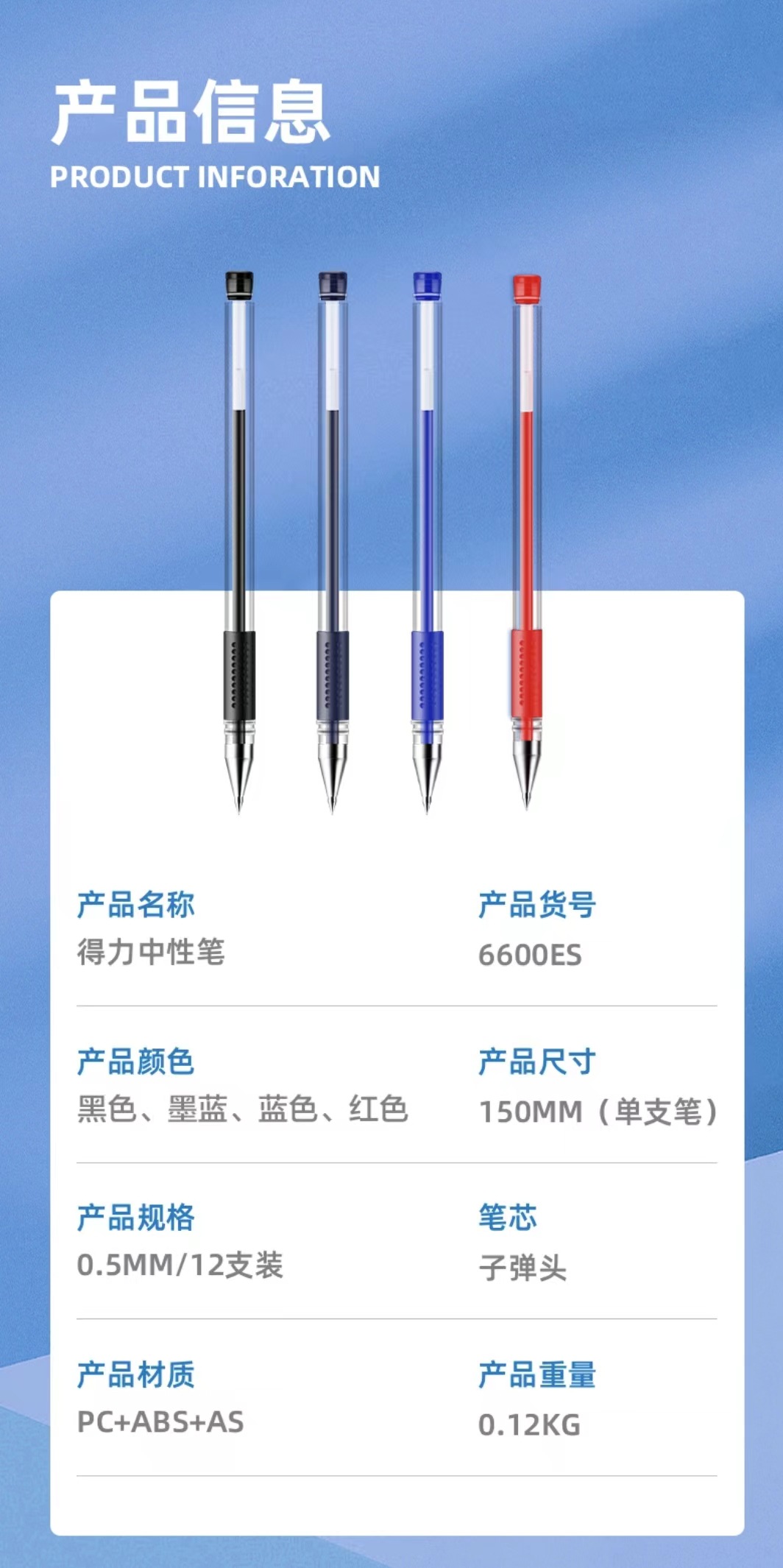 得力6600ES中性筆文房具サイン炭素水筆0.5mm事務ペン学生中性筆