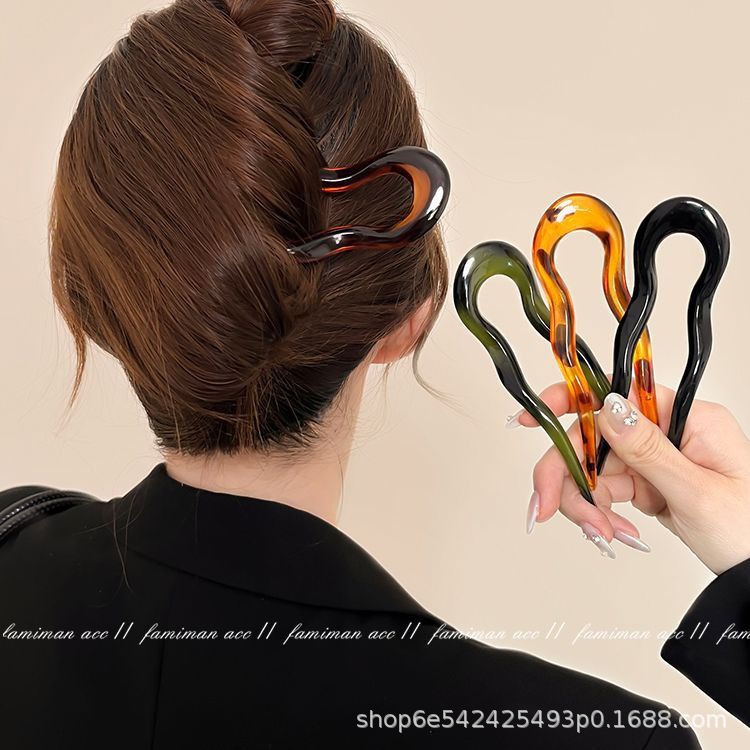亚马逊跨境新款法式醋酸发簪女U型发夹复古高级感丸子头盘发簪子