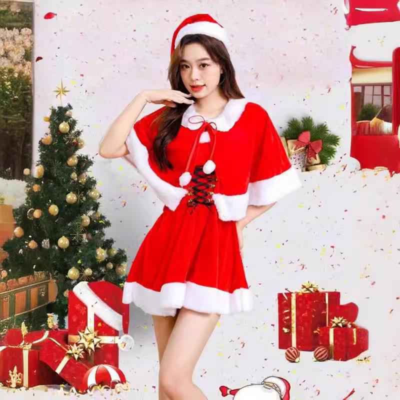新商品の実写クリスマス服日本楽天クリスマスに胸を拭いてワンピースの小さいマントの舞台服を飾ります。