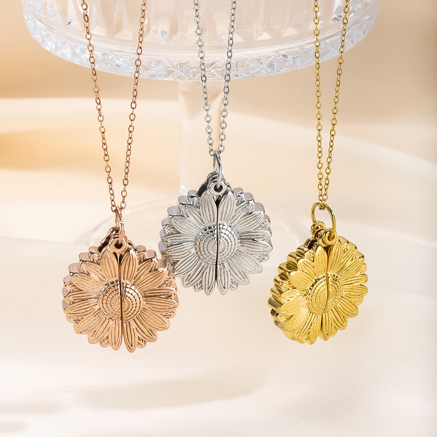 国境を越えた欧米のヒマワリは二重に刻まれたステンレスのネックレスを開くことができます。