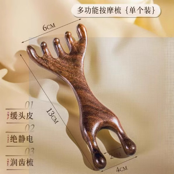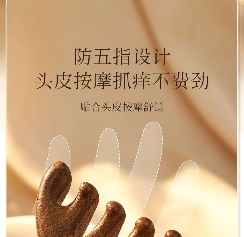 鹿角五爪双頭ヘッドマッサージコーム、白檀コーム、疲労軽減ヘッドマッサージコーム、ロングハンドルマッサージコーム
