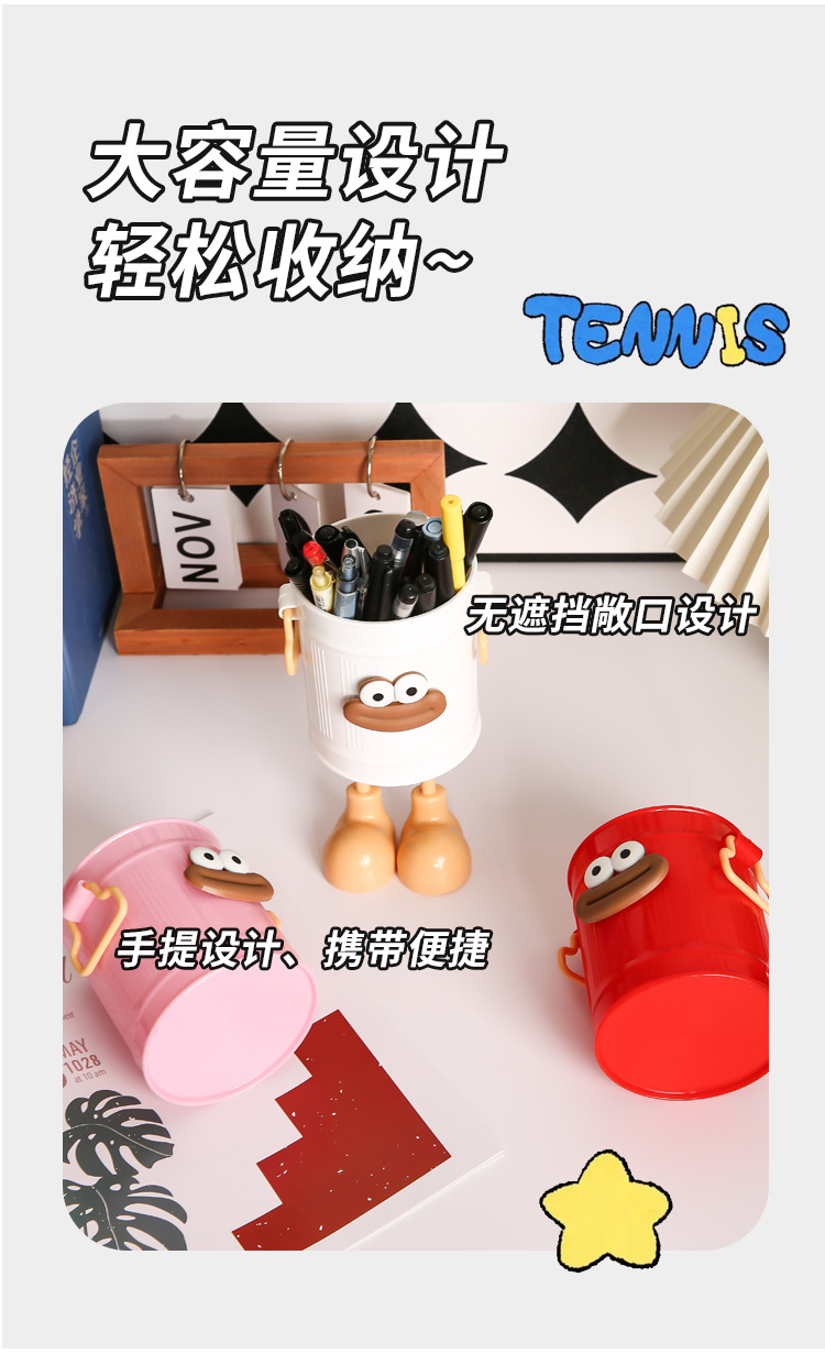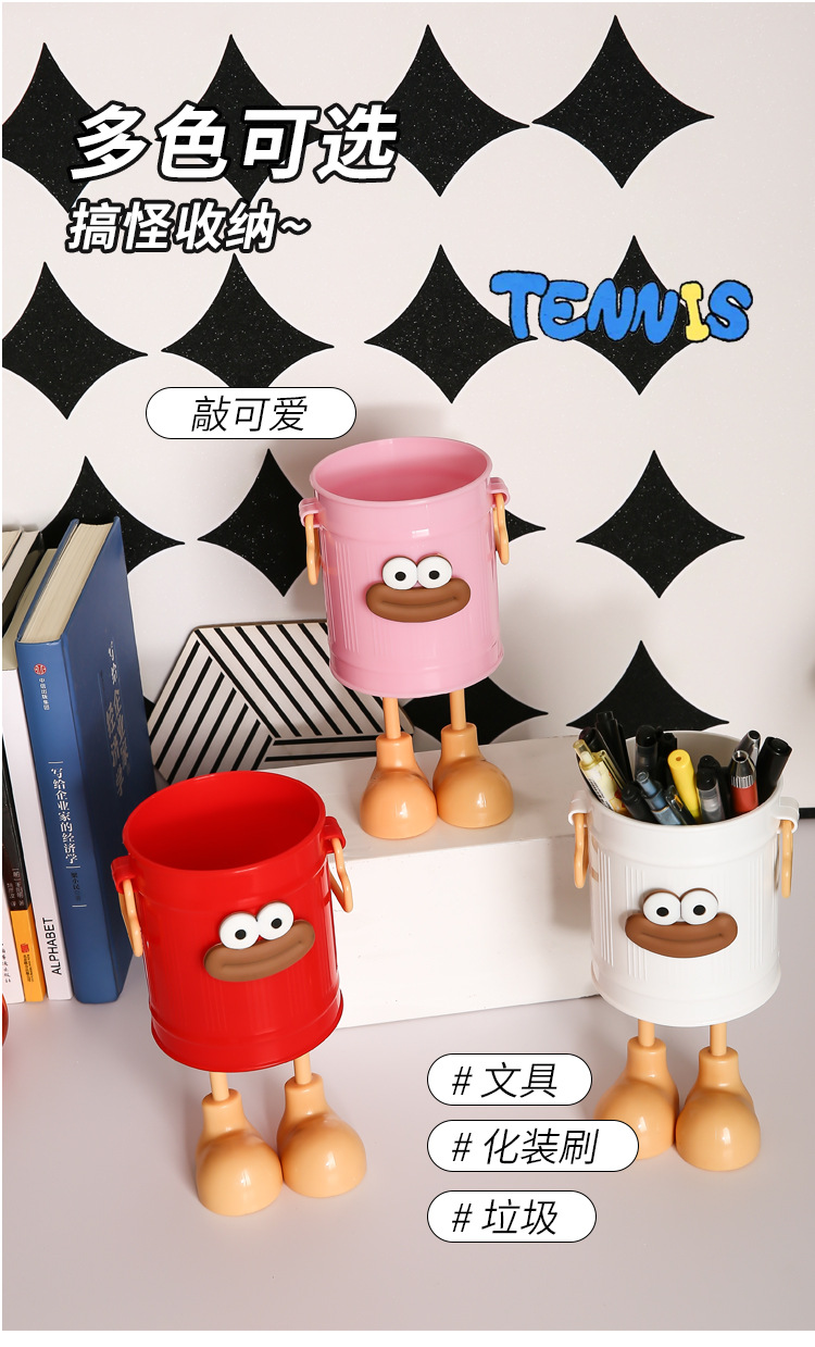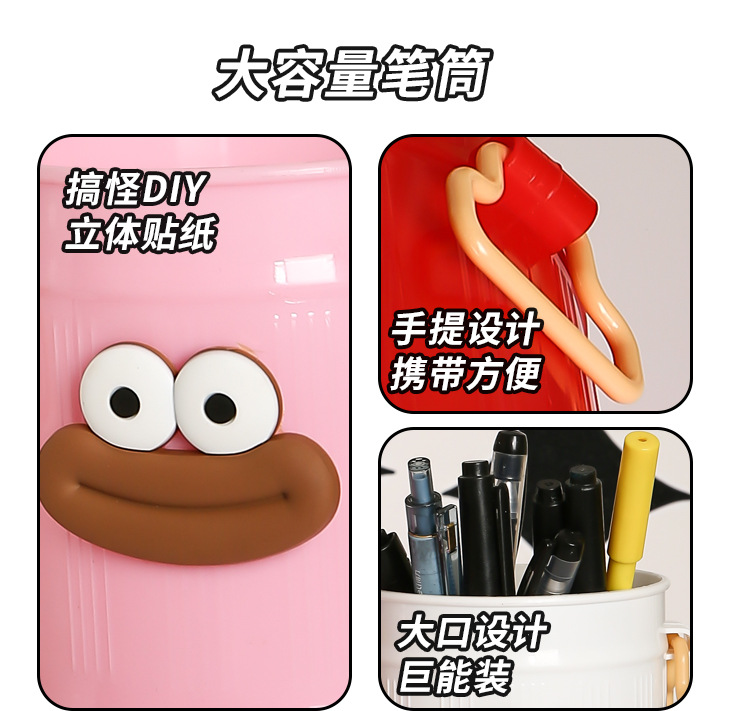 可爱化妆刷收纳筒大容量分格整理盒桌面卡通化妆品口红眉笔收纳盒