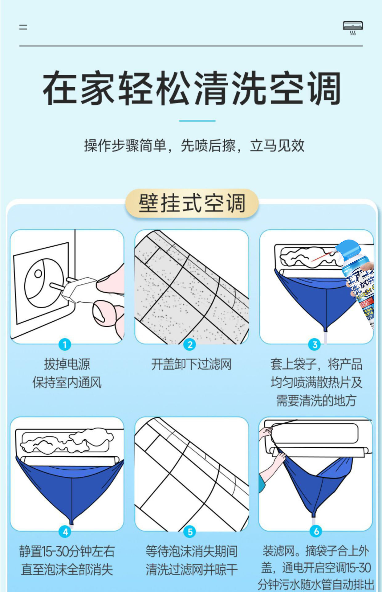 商品番号 HBS-エアコンクリーニング-ブルー 520