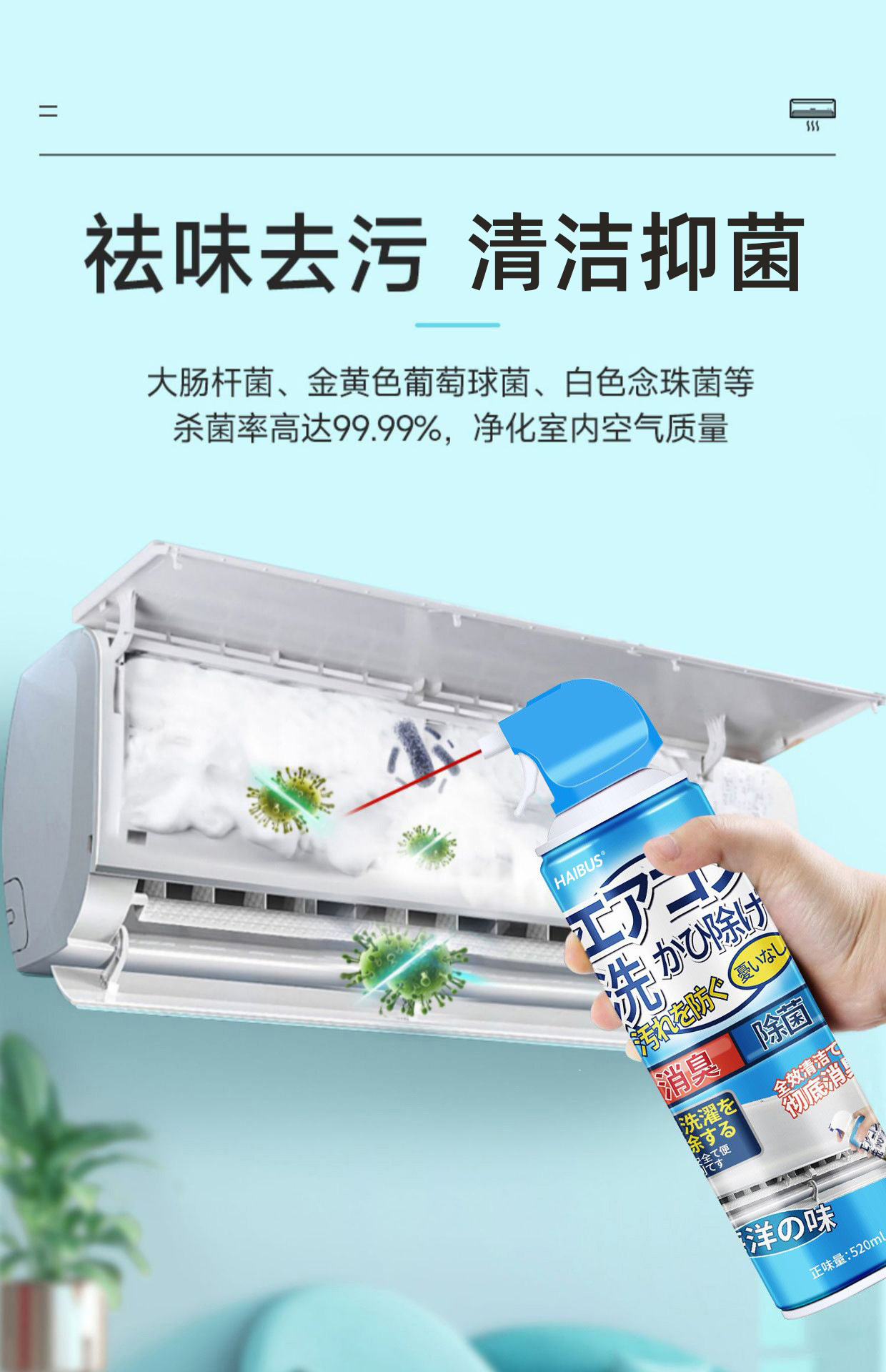 エアコン洗浄剤 家庭用 分解不要 洗浄不要 エアコンクリーナー エアコン内外機用 消臭・除塵専用