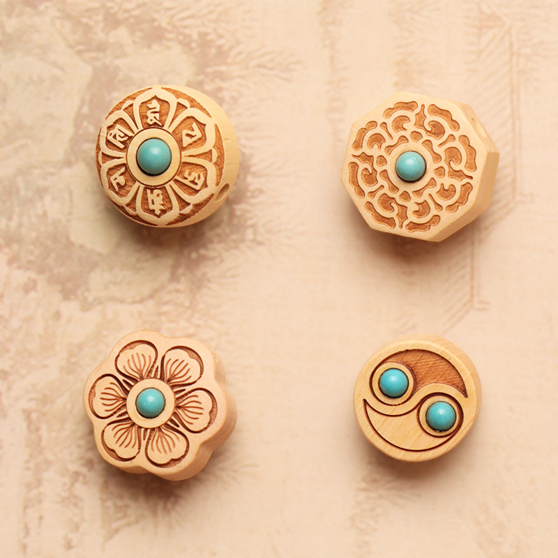 ツゲ材象嵌ターコイズアクセサリー diy ジュエリーペンダントキーホルダー車吊りビーズ木製八卦クラフトアクセサリー