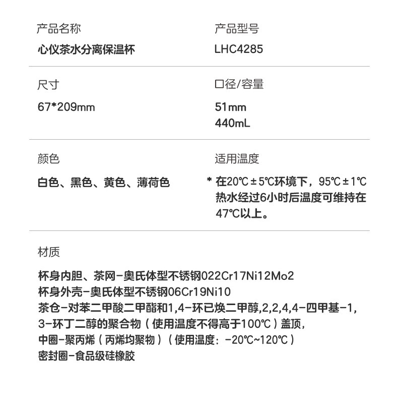 乐扣乐扣保温杯316医用级茶水分离水杯男泡茶杯女生花茶杯LHC4285