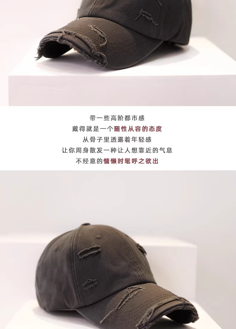 女性用野球帽、春夏新作、ヒップホップ、多用途、ソフトトップ、カーブつば、レトロな個性、男性用ダメージ加工ひびの入ったひさしキャップ