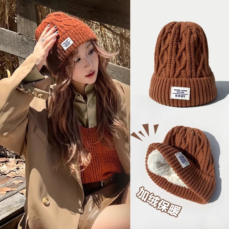 秋冬防寒帽子毛糸帽子女性ファッション韓国百合韓版ニット帽子男性クールプラスパイル厚手保温冷帽子