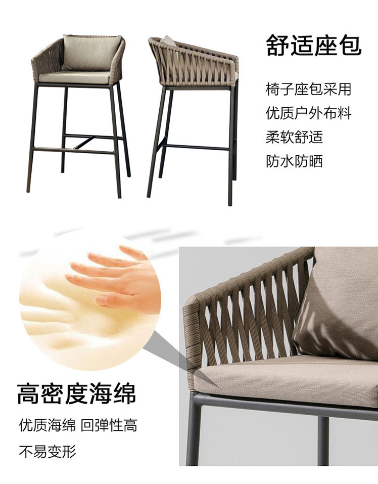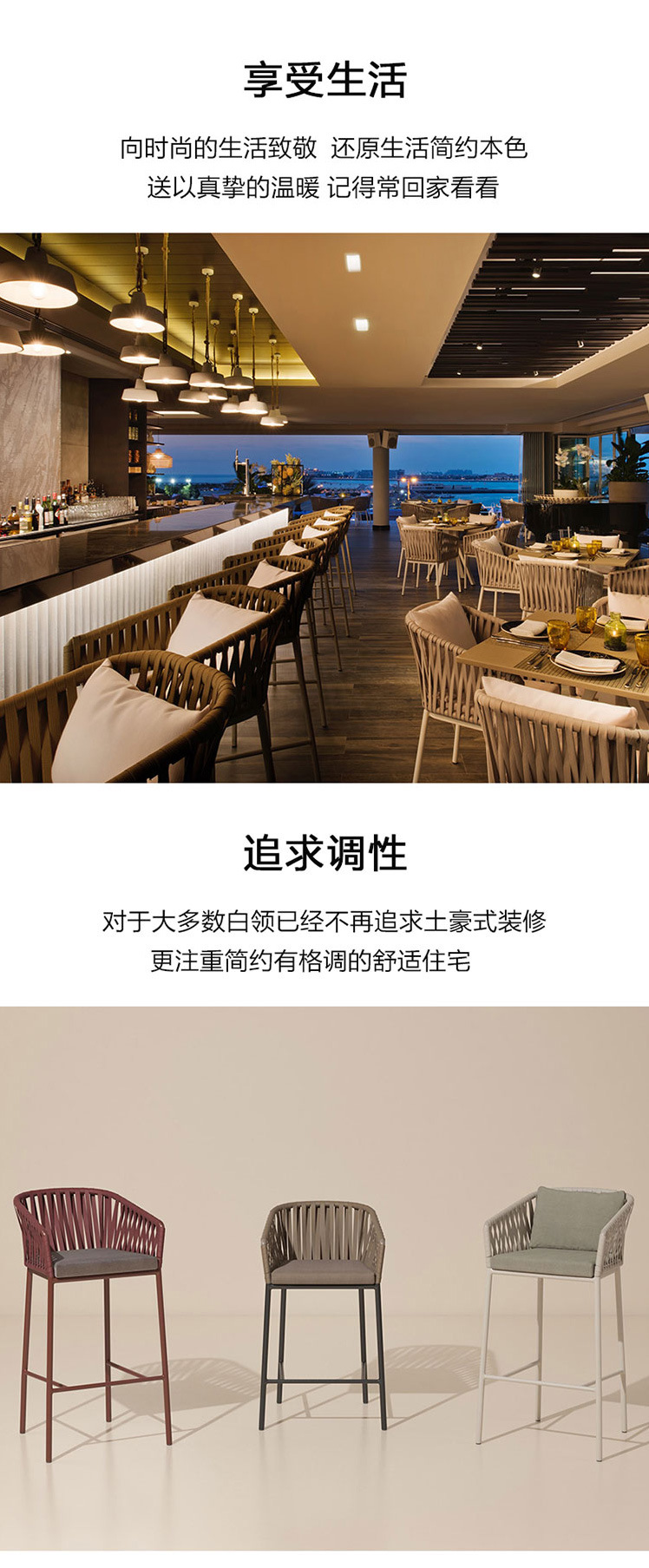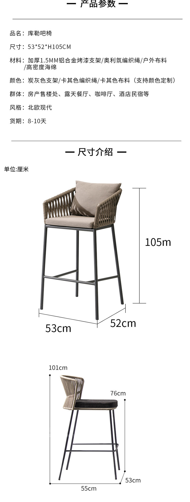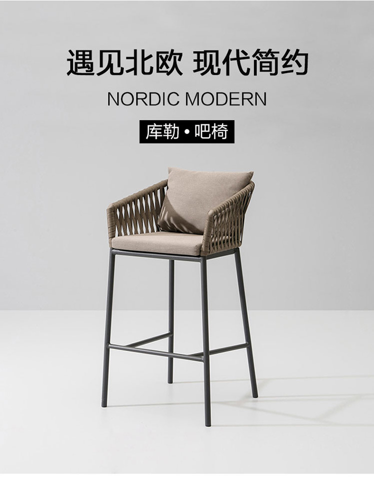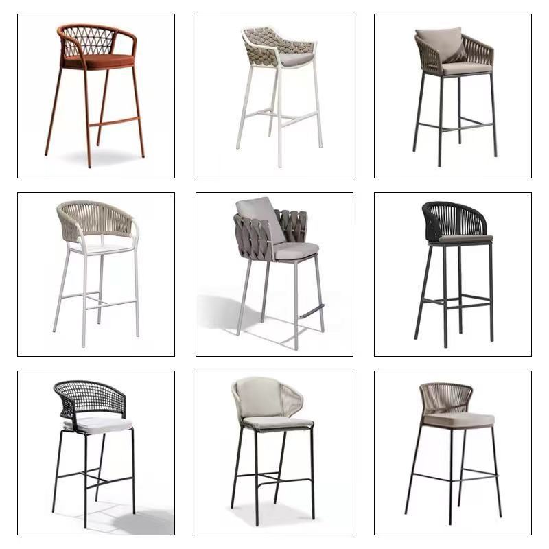 北欧屋外藤編みバー椅子高級高足椅子屋外別荘露天バー民宿実木バーカウンター椅子