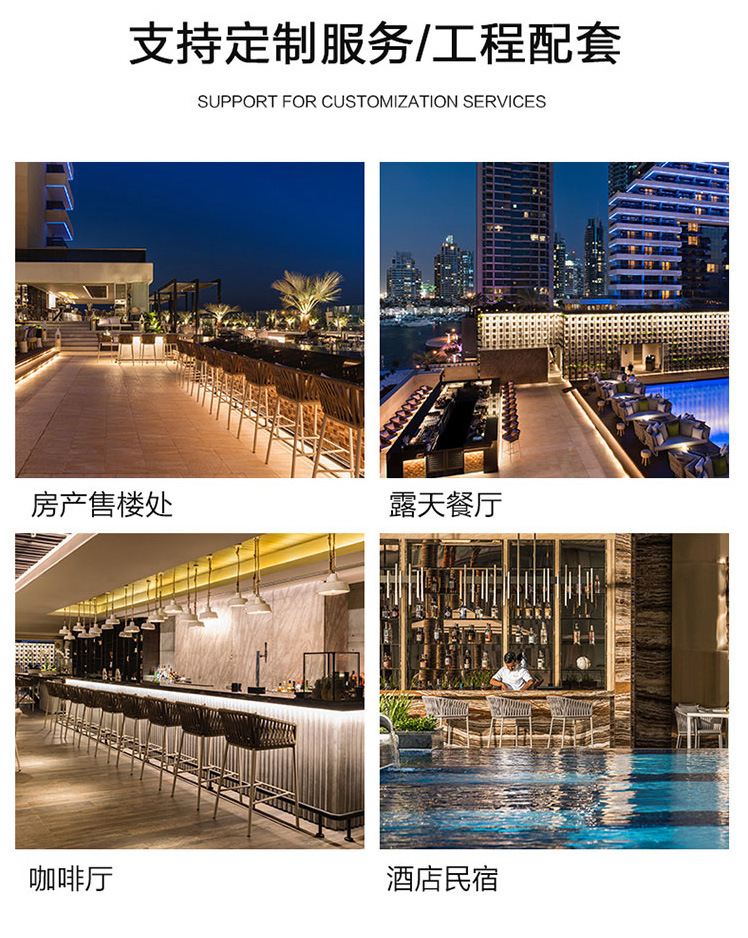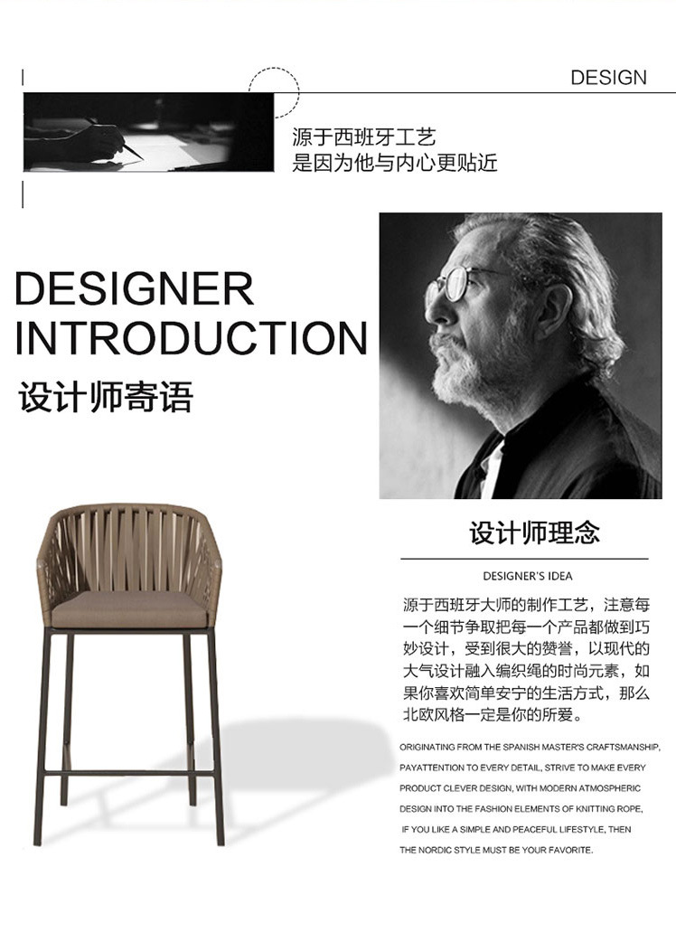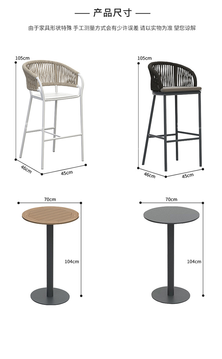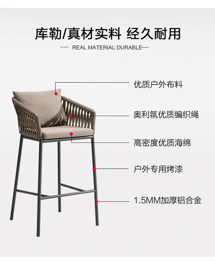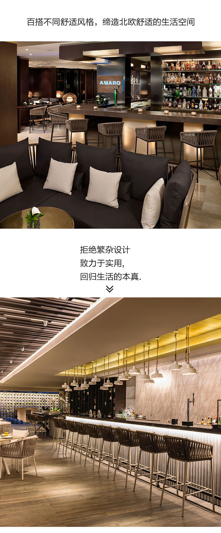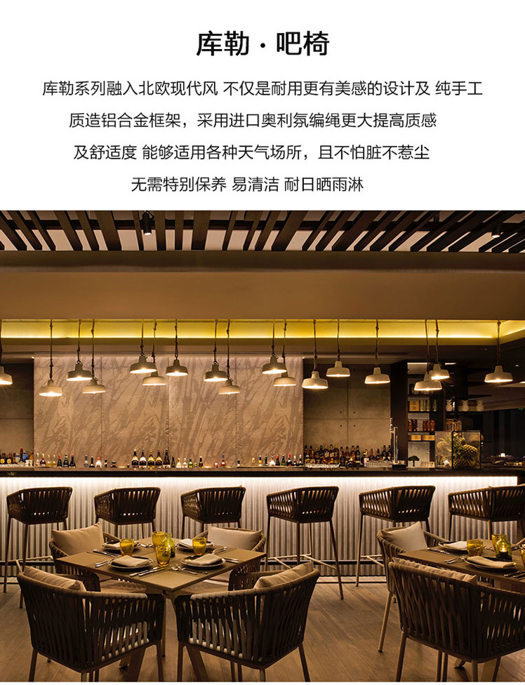 北欧屋外藤編みバー椅子高級高足椅子屋外別荘露天バー民宿実木バーカウンター椅子