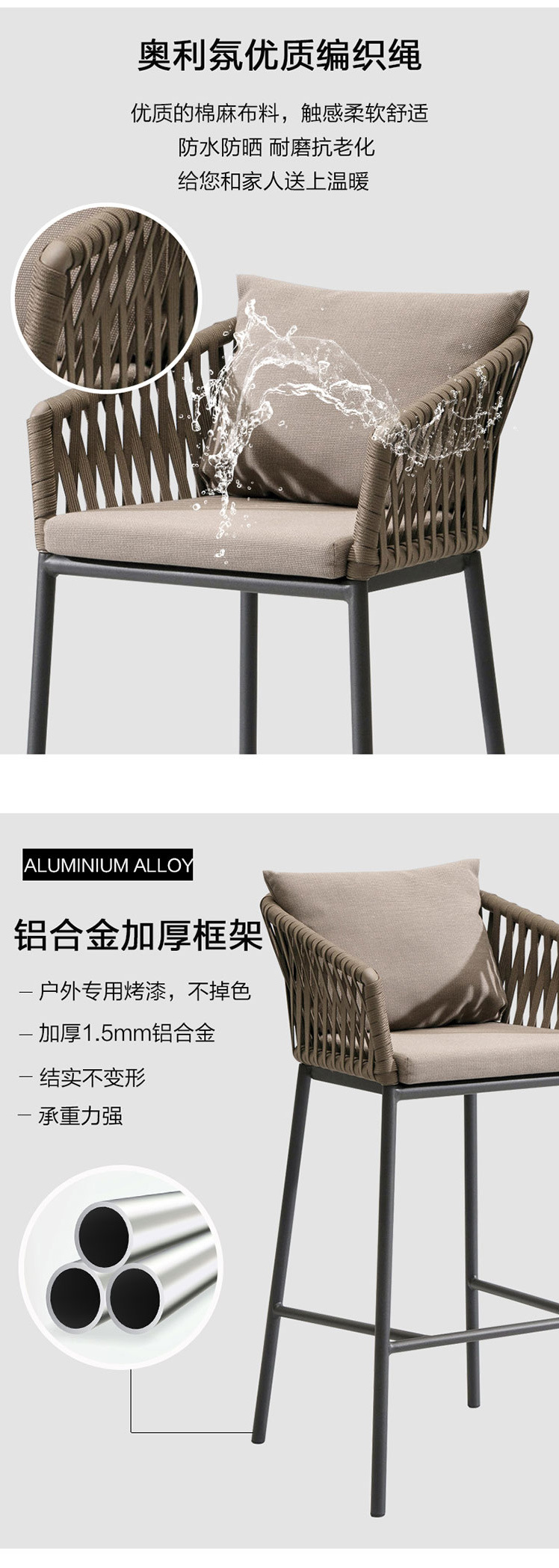 北欧户外椅庭院花园露台防水防晒休闲藤编台吧椅简约藤椅高脚椅子