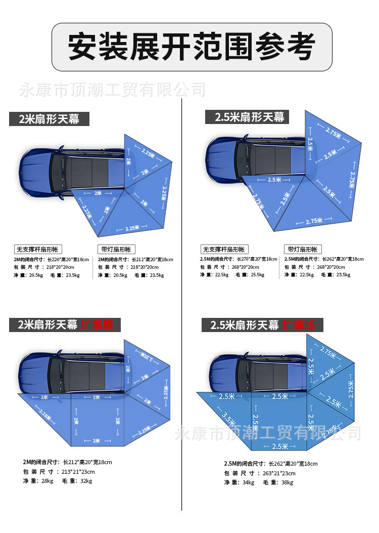 威派270度クイックオープン扇形テント、屋外扇形車両サイドテント、車載テント、テント側面カバー