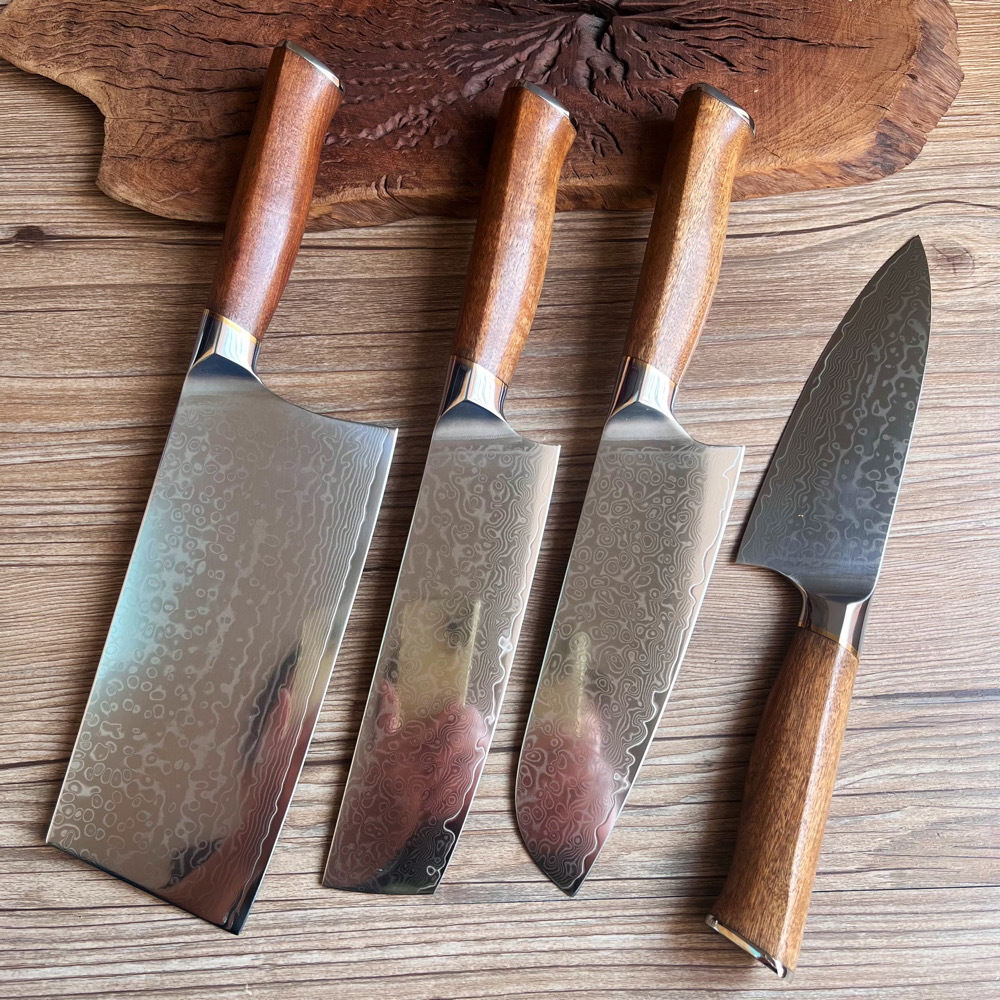 VG10花纹钢大马士革钢切片斩骨刀水果刀套装刀具跨境外贸