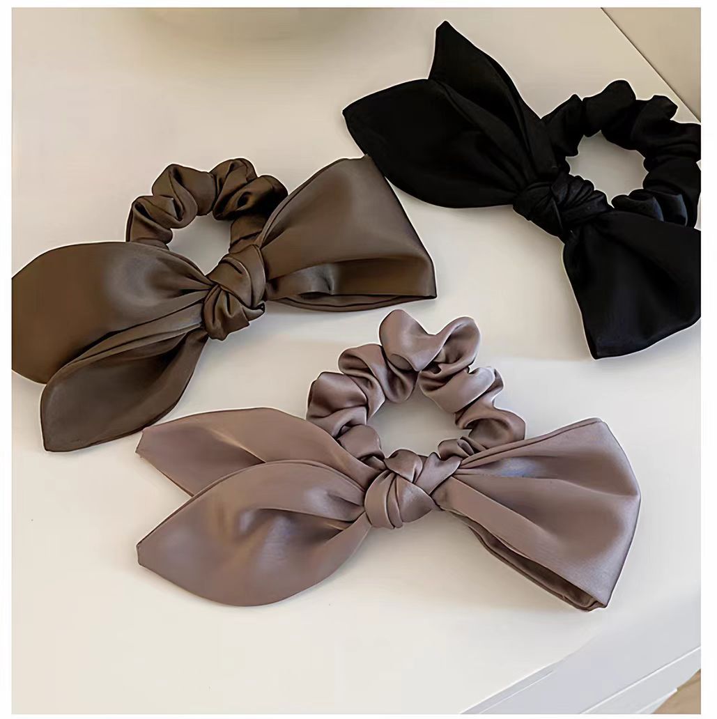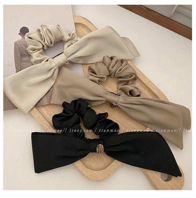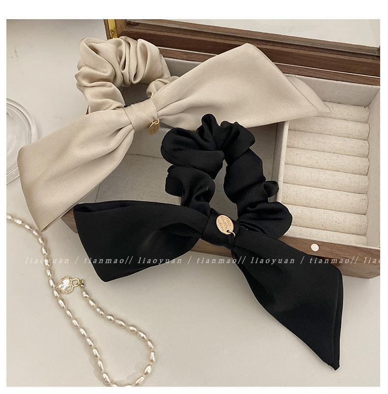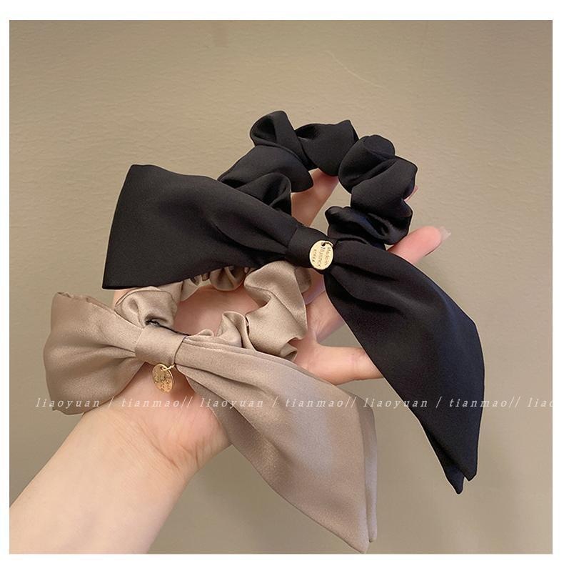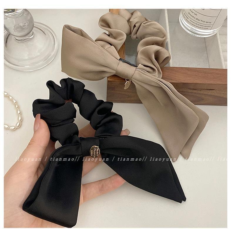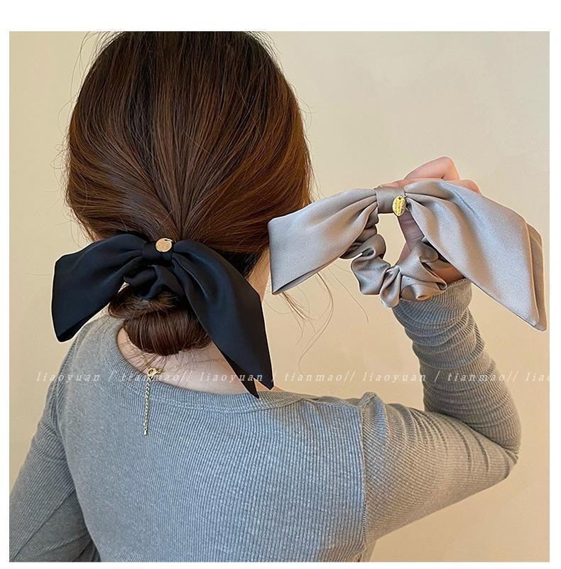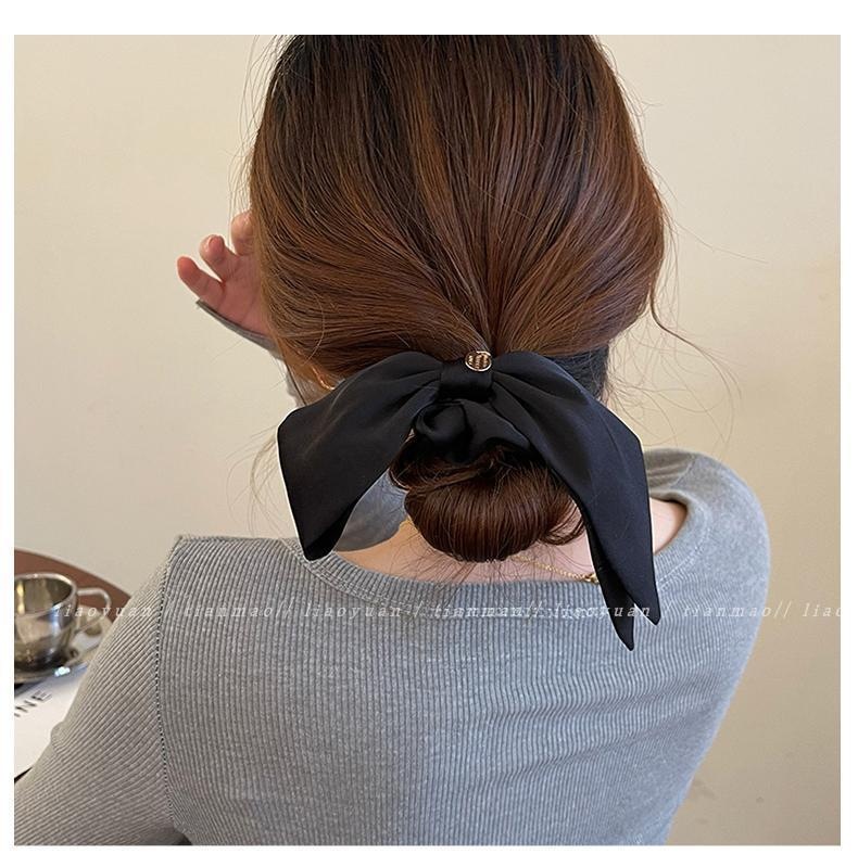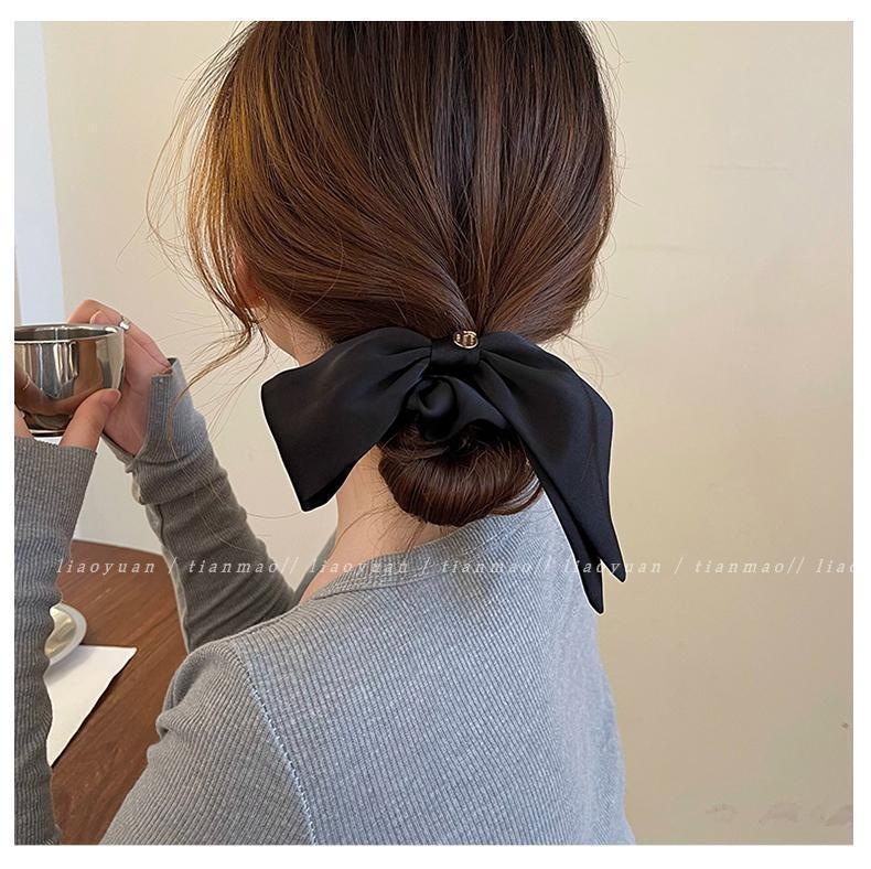 黑色蝴蝶结头饰缎面大肠圈后脑勺发圈高弹力扎发头绳飘带发饰女秋