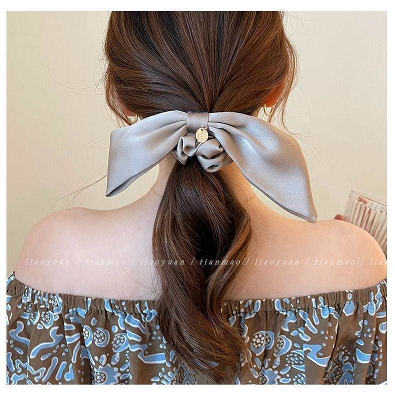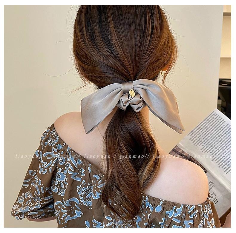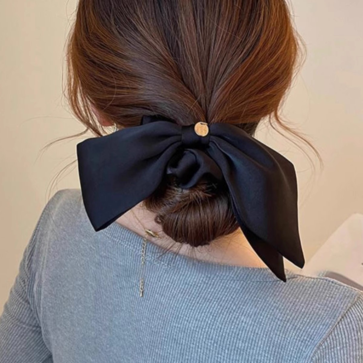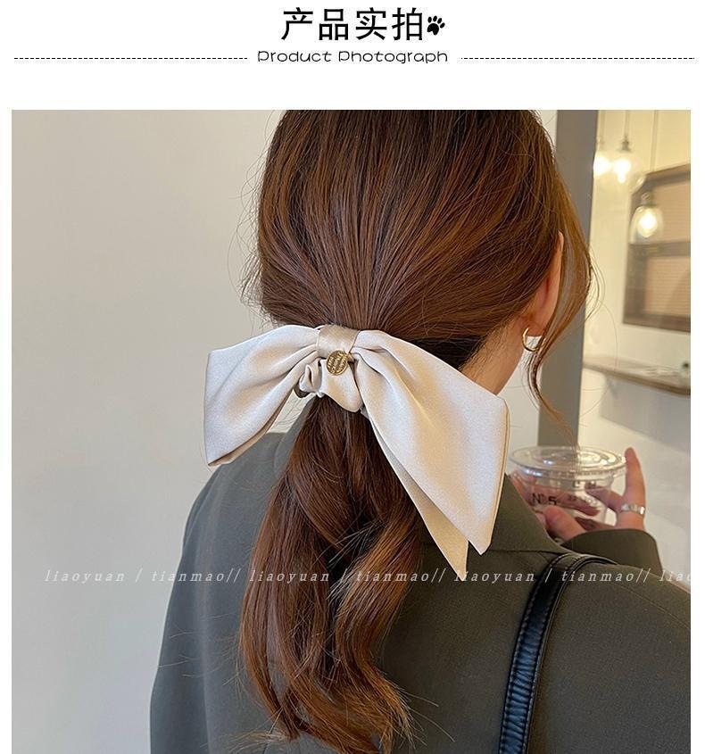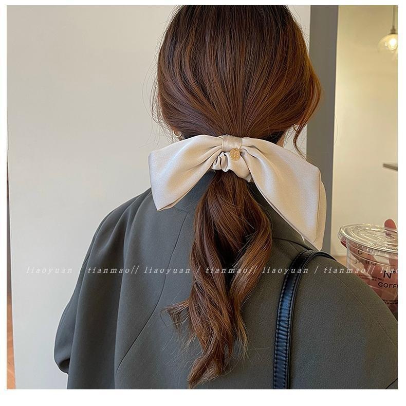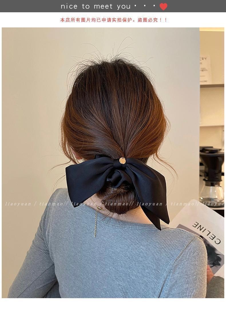 シンプルで高級感のあるサテンの蝶結びの髪飾りの気質は優雅です。