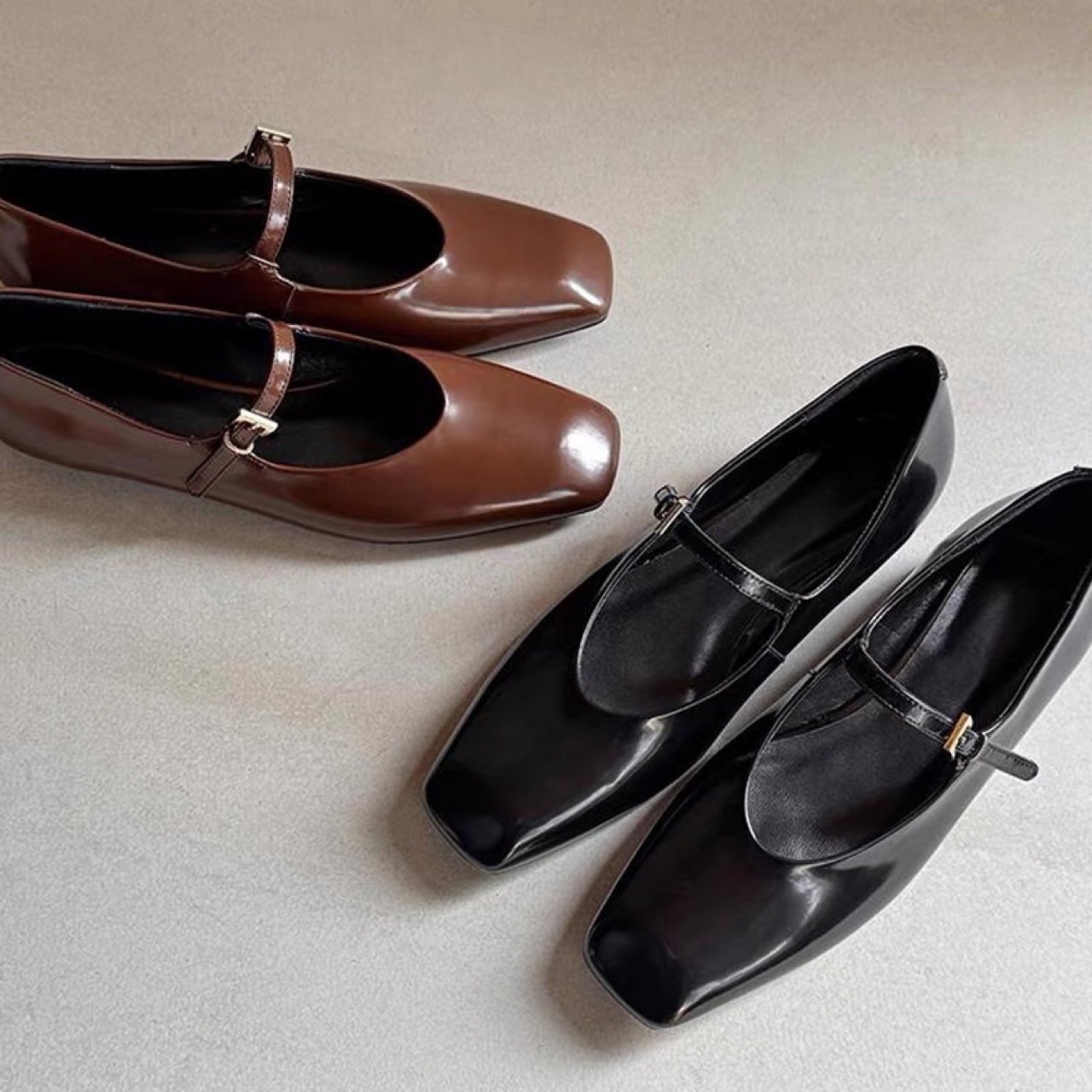 英国風パテントレザーハイヒールの女性用シープスキンバージョン、スクエアトゥ、浅い口、ベルクロ付き、女性用メリージェーンシューズ