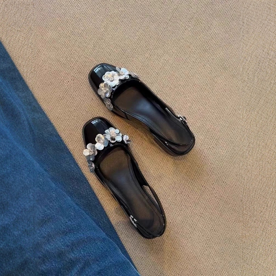 2024春夏の新型革の先の低い靴の浅い口の四季は女性の靴の銀色の気質の靴の女性を合わせます。