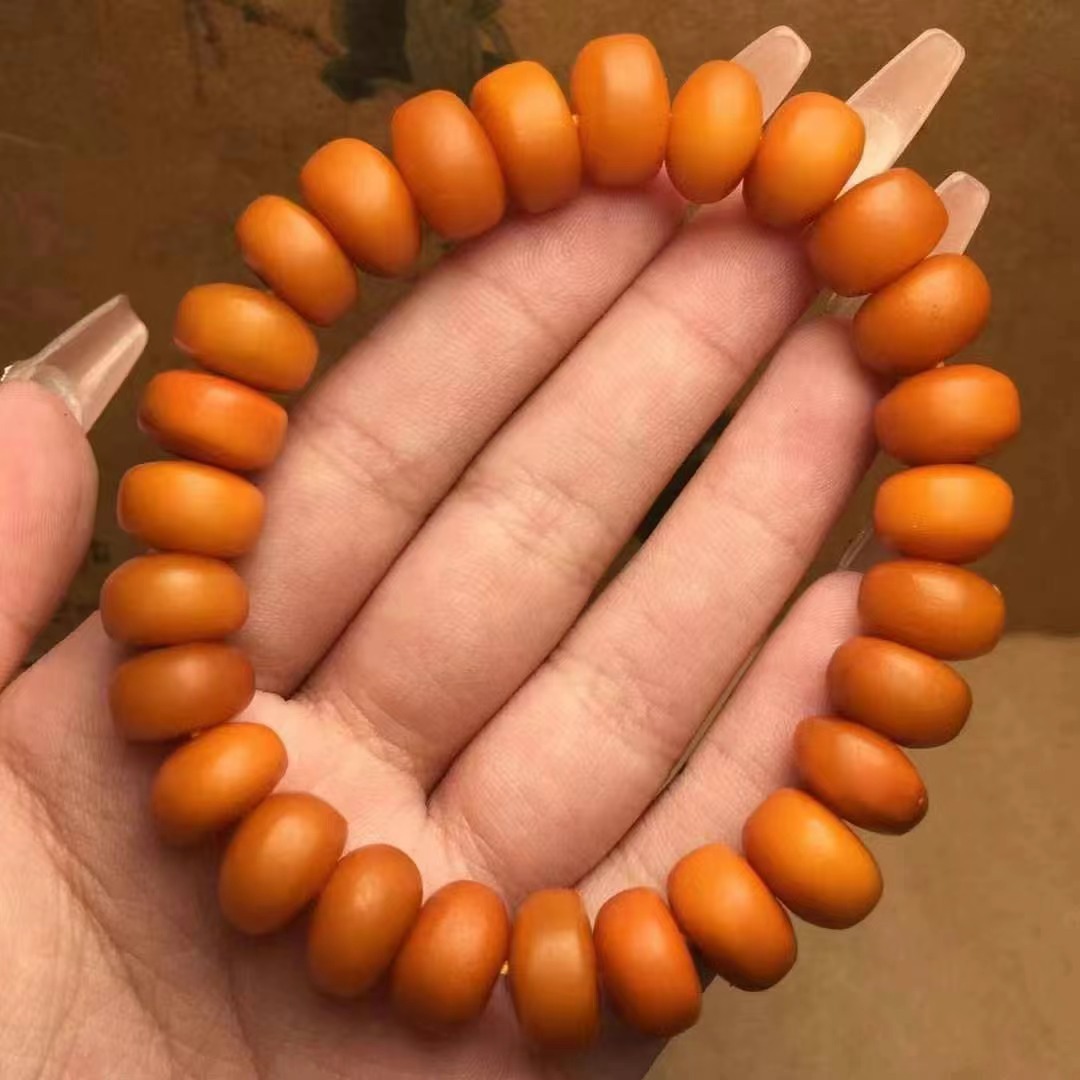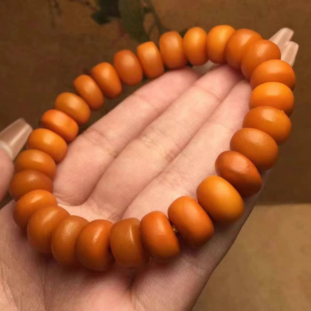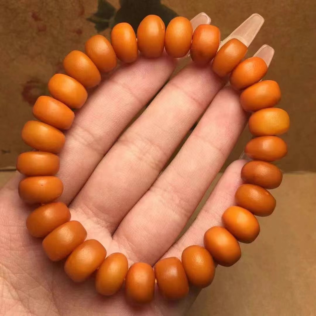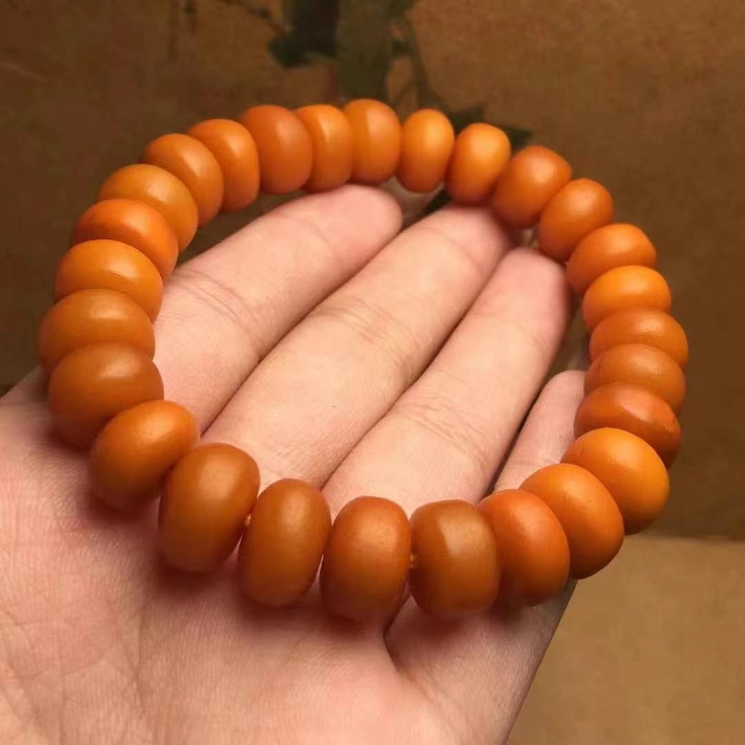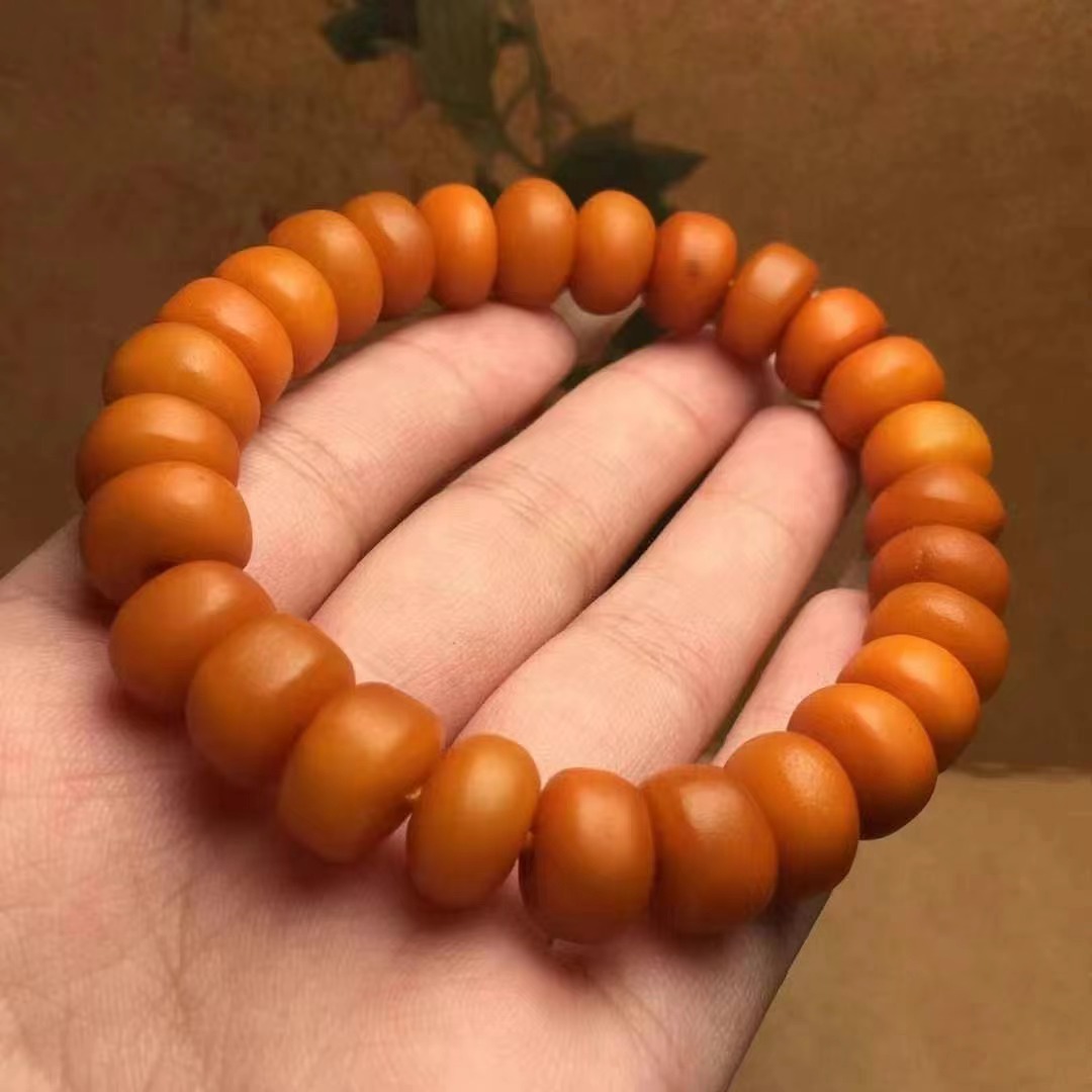 【品名】天然蜜蜡老蜡扣子手串