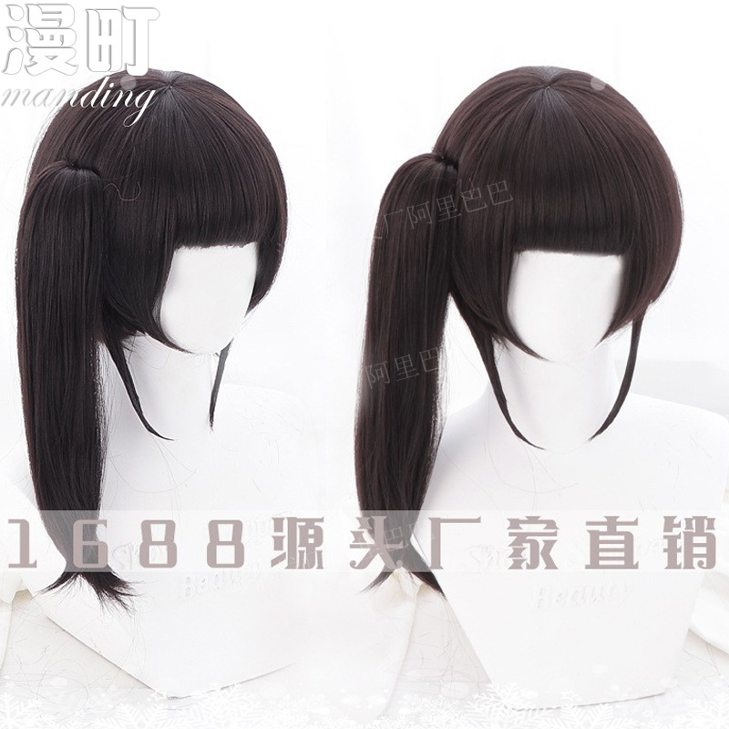 チェーンソー人蕾塞cosかつら濃い紫色のお下げの形のアニメかつらチェーンソー人かつら爆弾悪魔