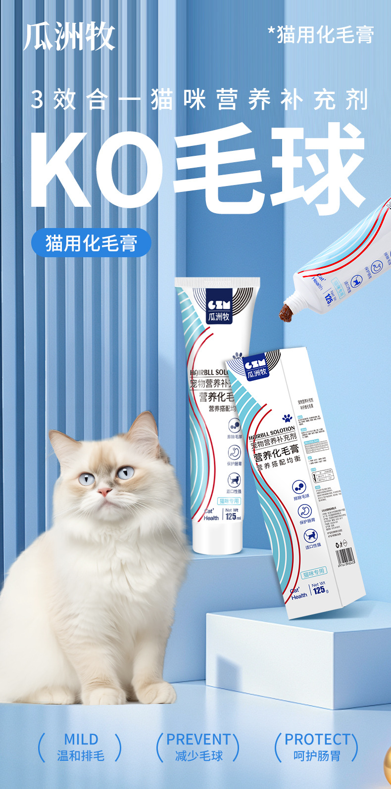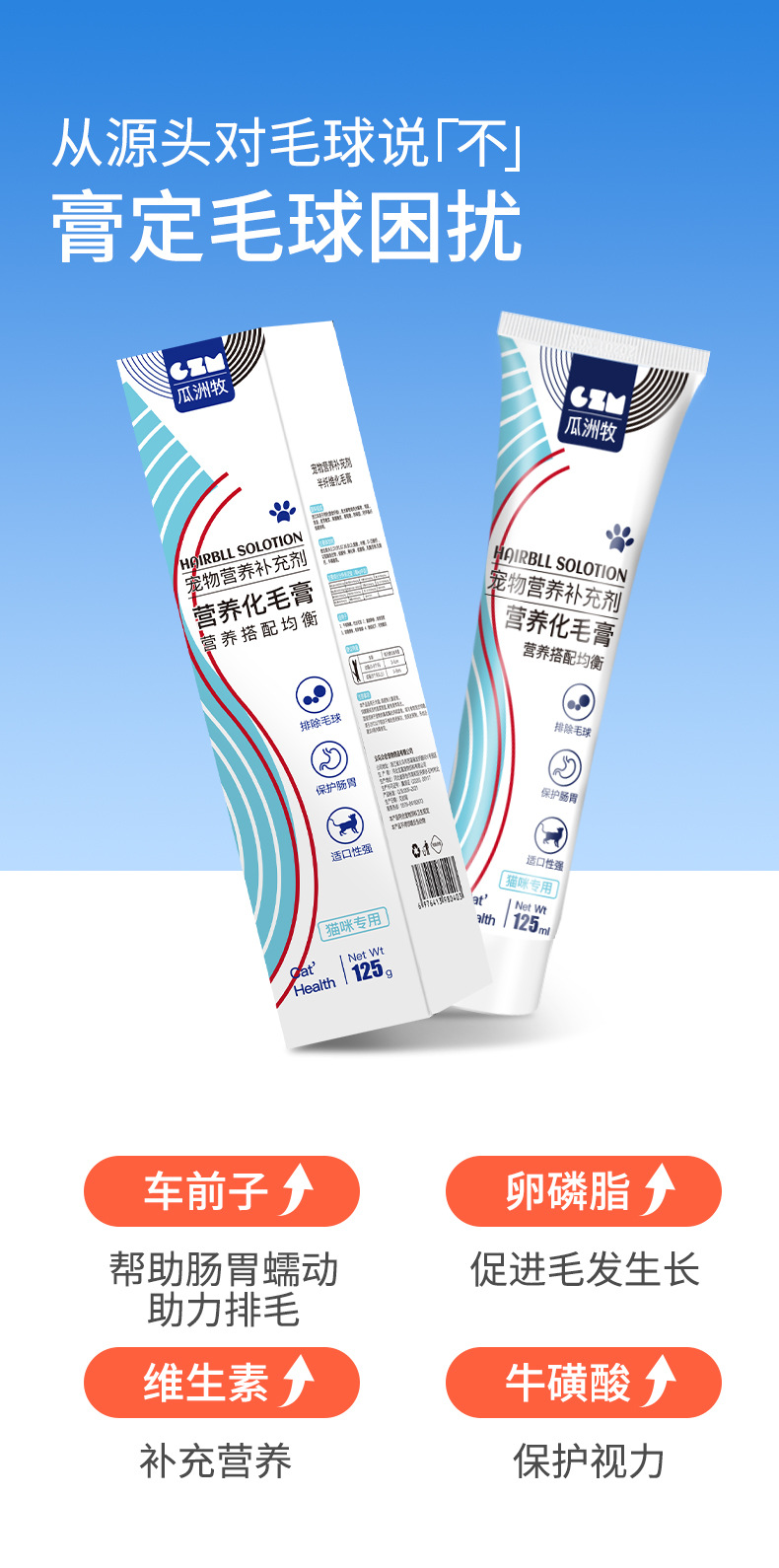 猫草毛玉クリーム、猫専用毛玉タブレット、ペットフィッシュオイル栄養クリーム、胃腸を整えるビタミンサプリメント
