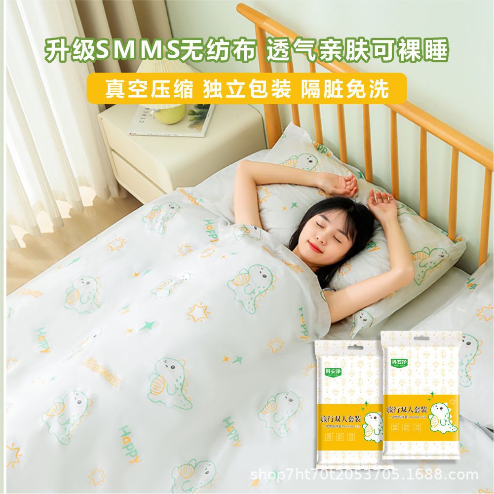 使い捨て旅行二人四点セット枕カバーシーツ漫画プリントホテル列車寝台携帯ベッド用品