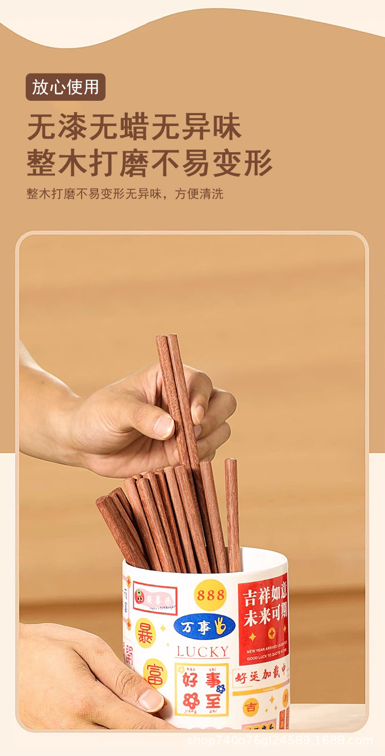【メーカー直販】手羽木箸卸売り家庭用紅檀木無漆無ワックス木箸彫刻