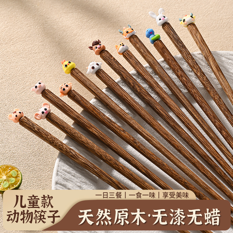 子供の箸は漆の木の箸がなくて、かわいい動物の家庭で箸を練習します。