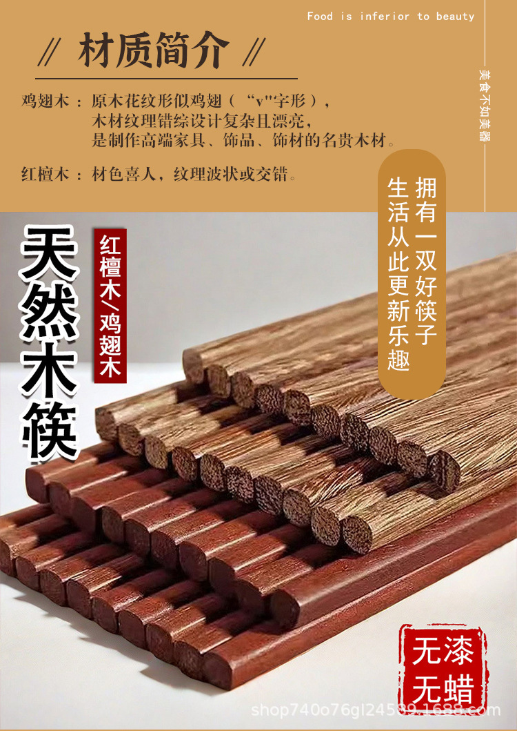 【工場直売】ドーム福箸家庭用紅檀木無漆無ワックス木箸鶏翅木箸卸売り
