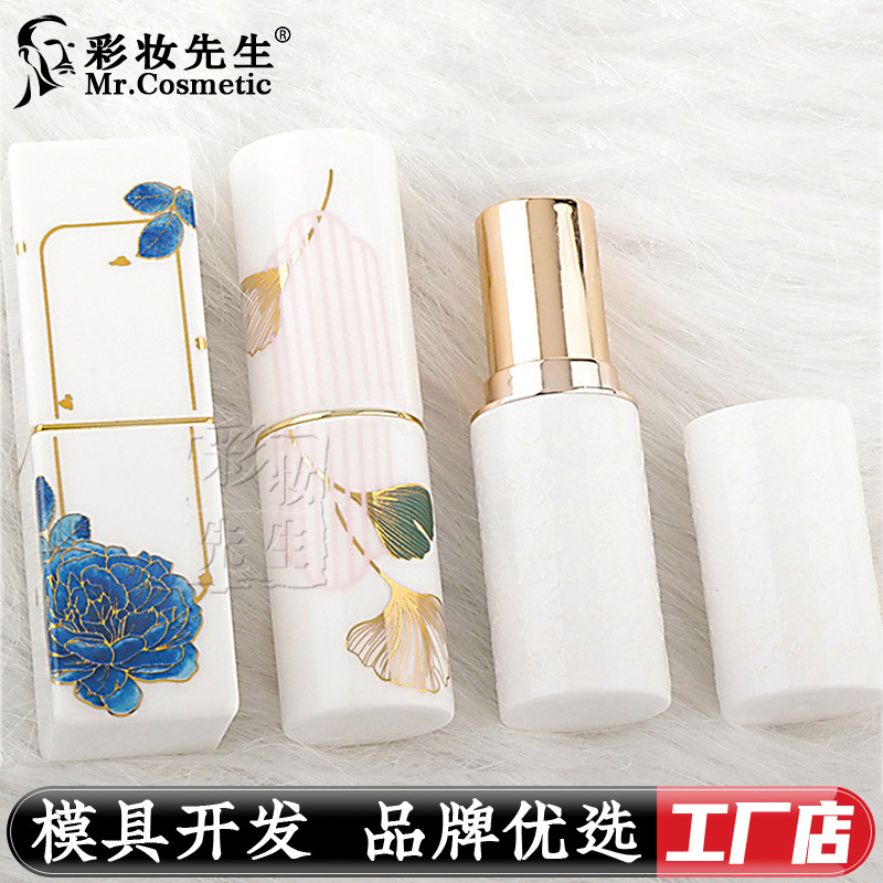高級陶磁器口紅管中空管包材方形円形陶磁器口紅白色国風彫刻陶磁器口紅管