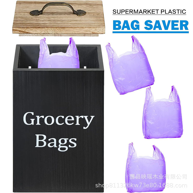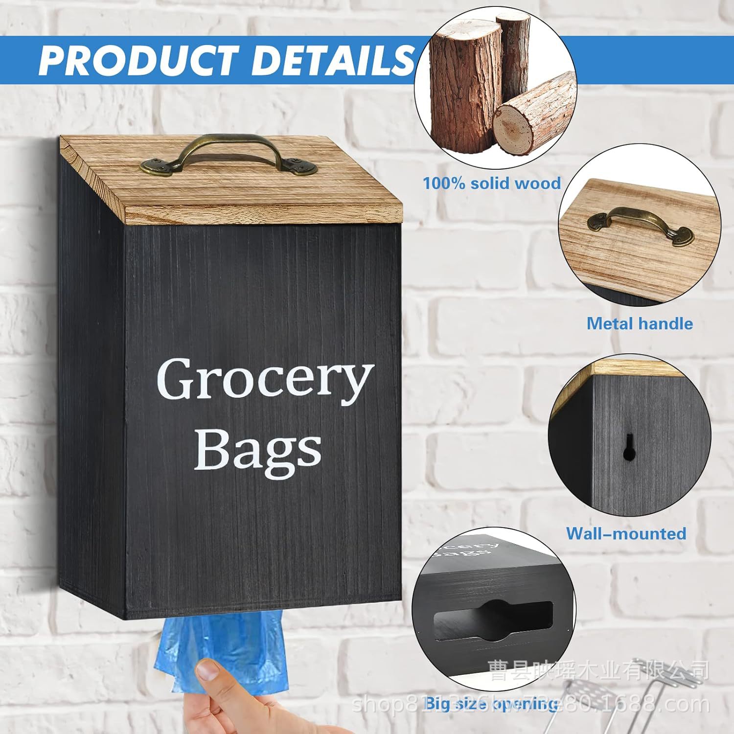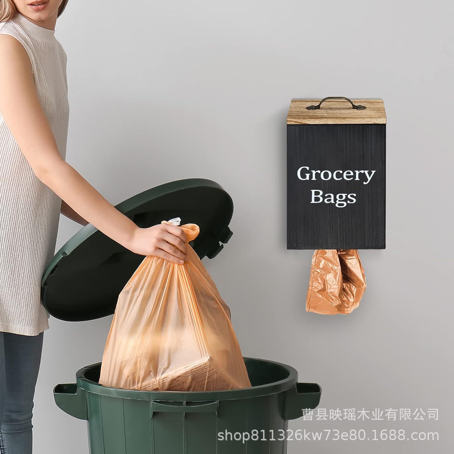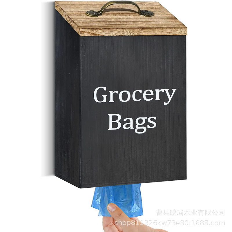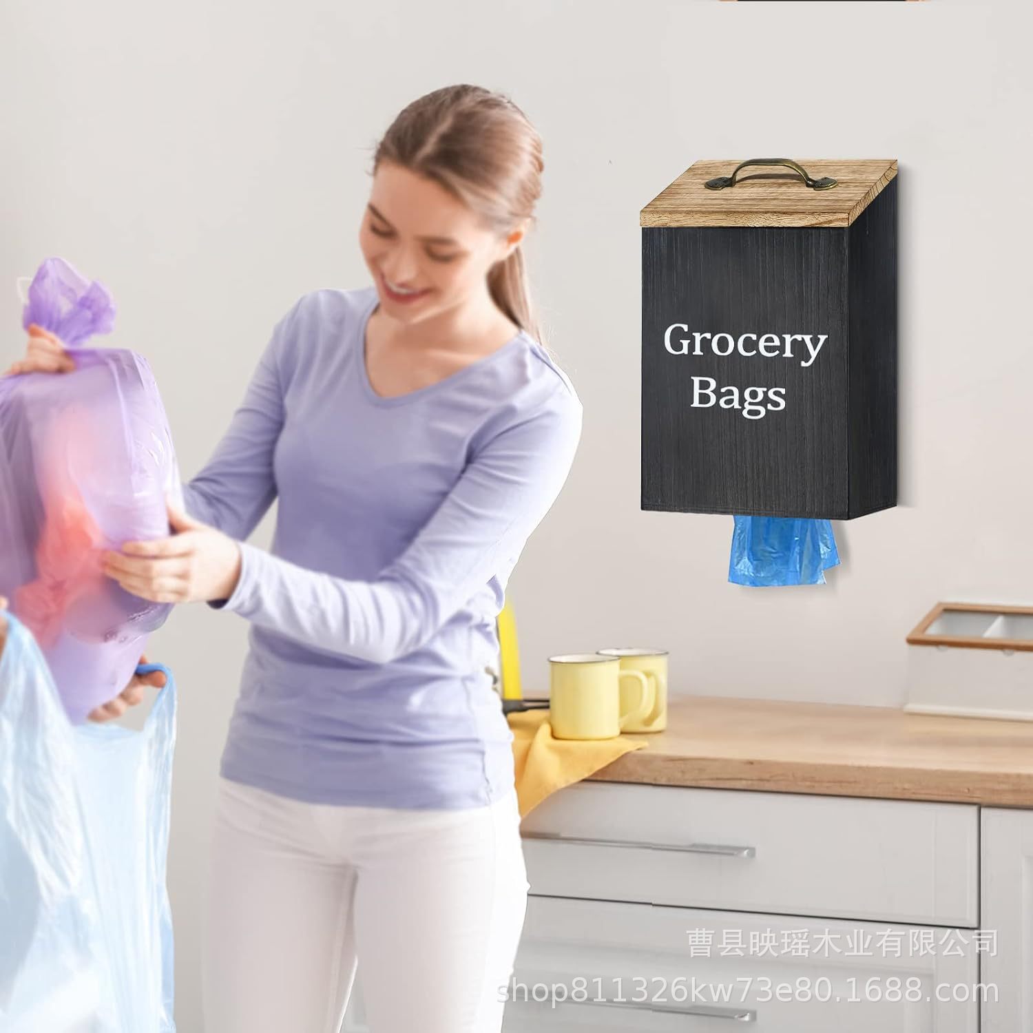木製ゴミ袋収納ボックスビニール袋コレクター壁掛け木製キッチン引き出し式ショッピングバッグ収納ボックス