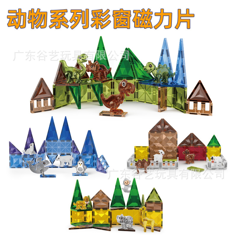 動物カラーウィンドウ磁気ピース子供の氷と雪の海の世界恐竜磁気組み立ておもちゃ磁気ビルディングブロックパズル