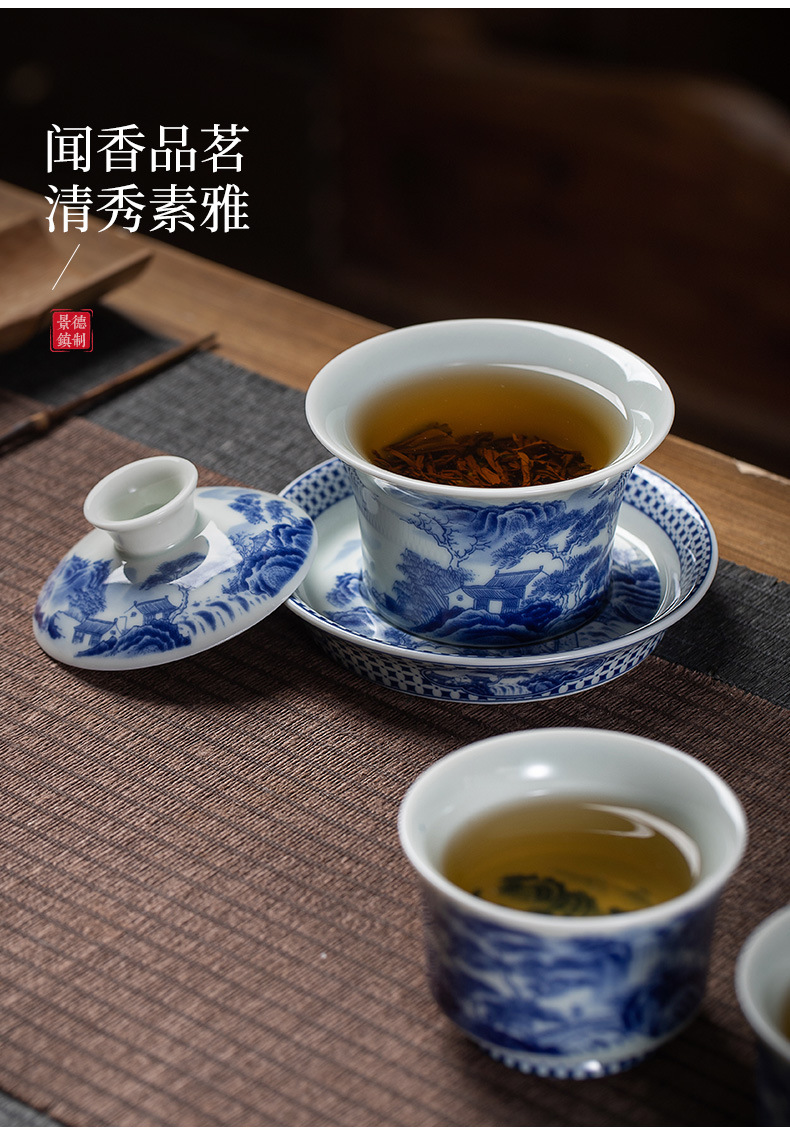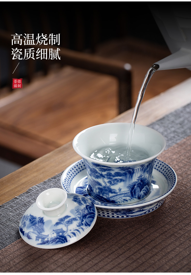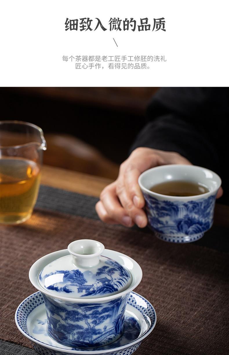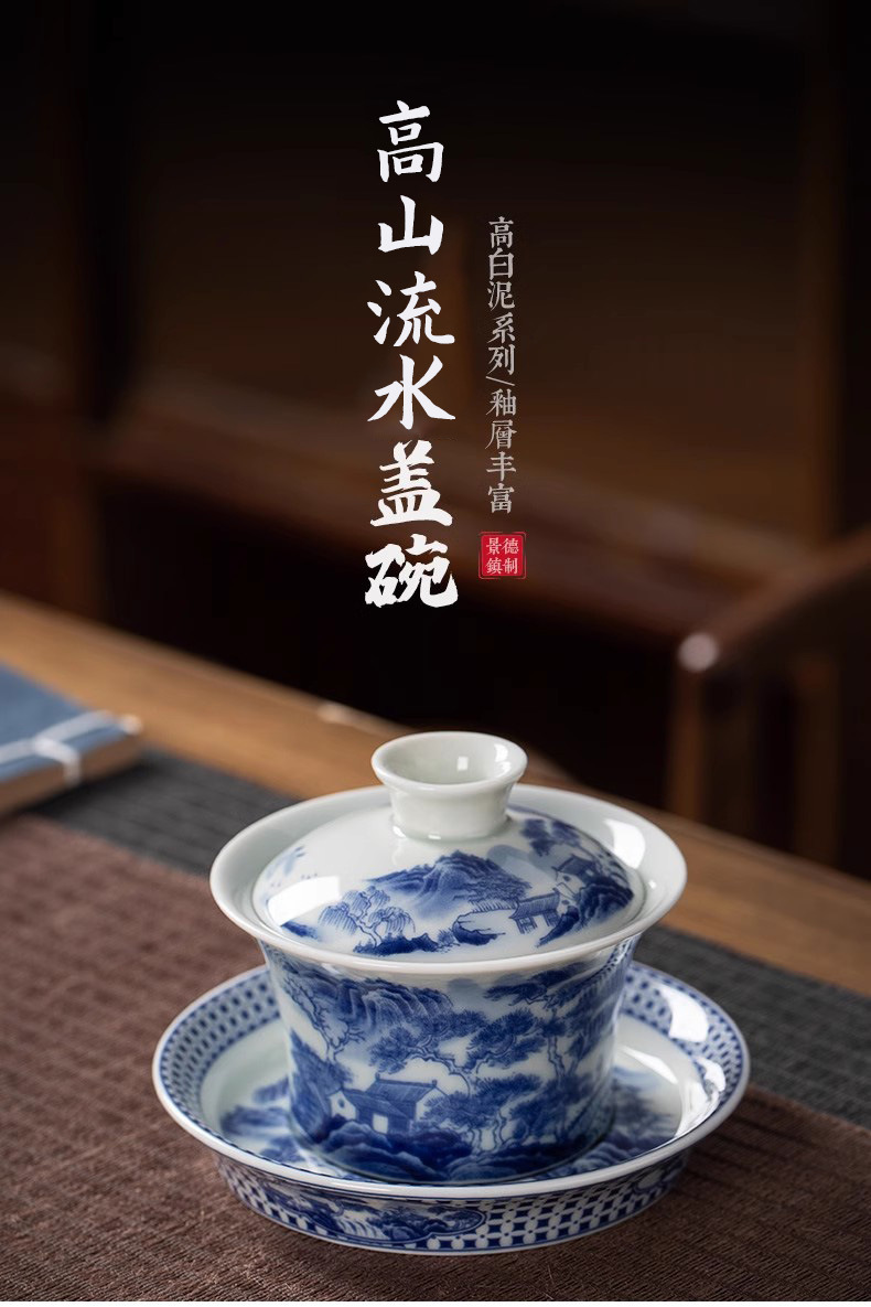 敦煌仏像山水青花磁器釉薬下彩蓋碗工夫茶道具レトロ陶磁泡茶三才蓋碗茶碗