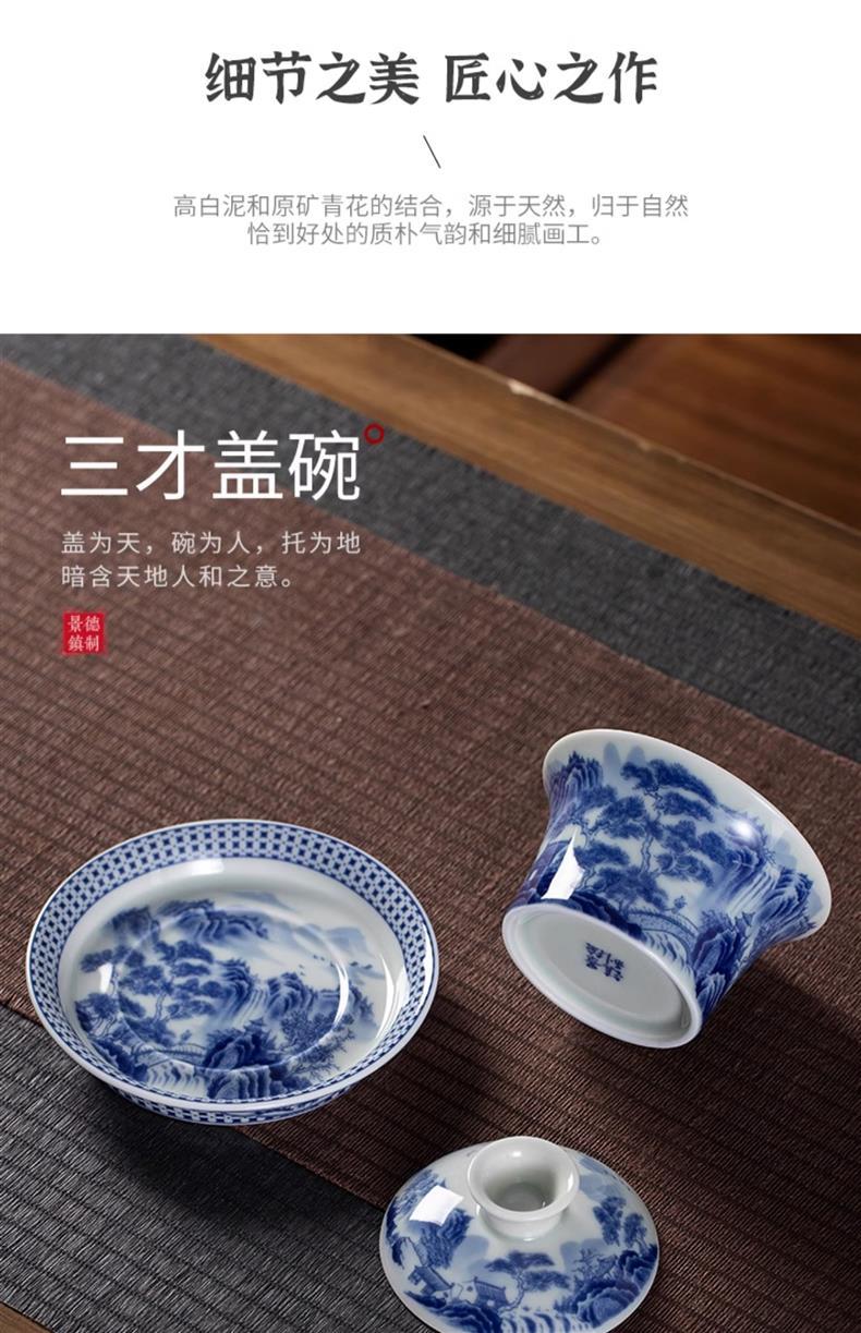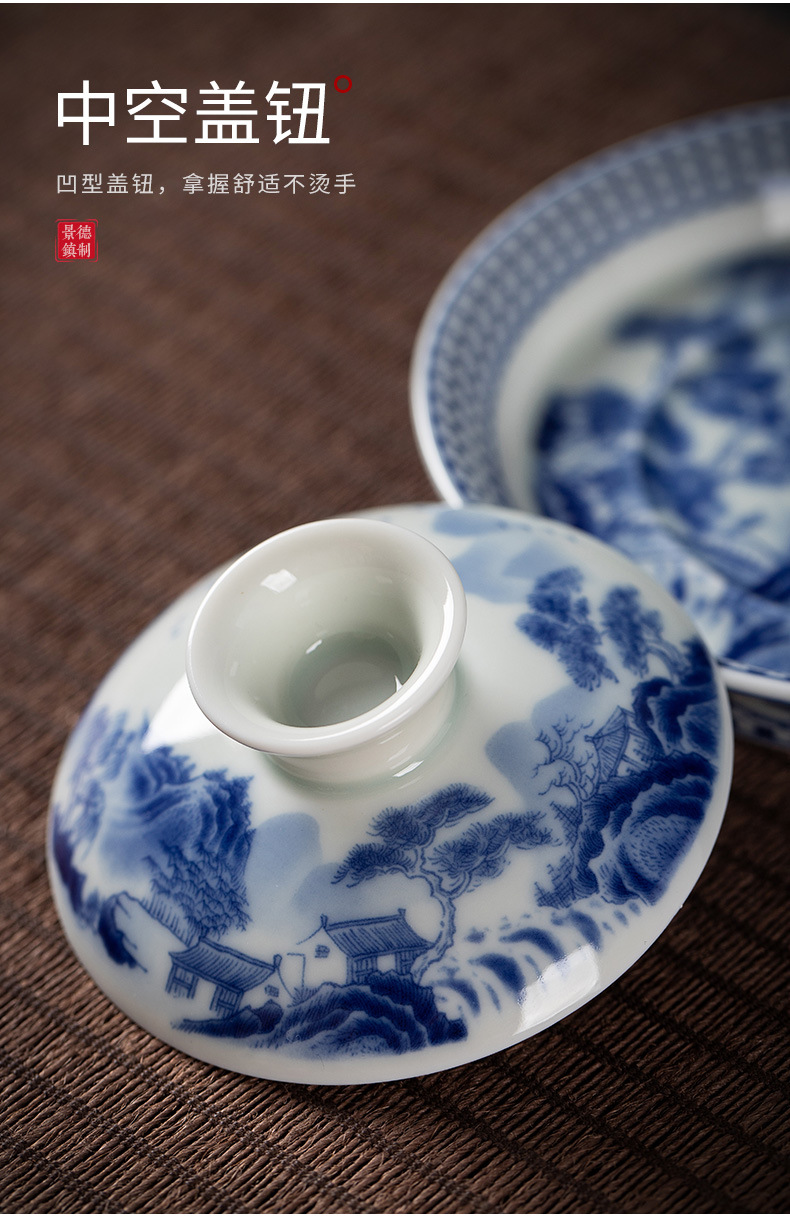 景德镇三才盖碗套装青花永乐缠芝莲泡茶碗陶瓷家用茶碗可悬停礼盒