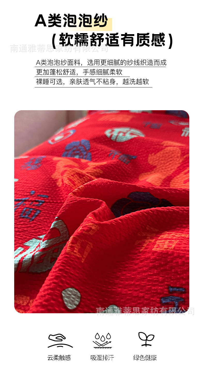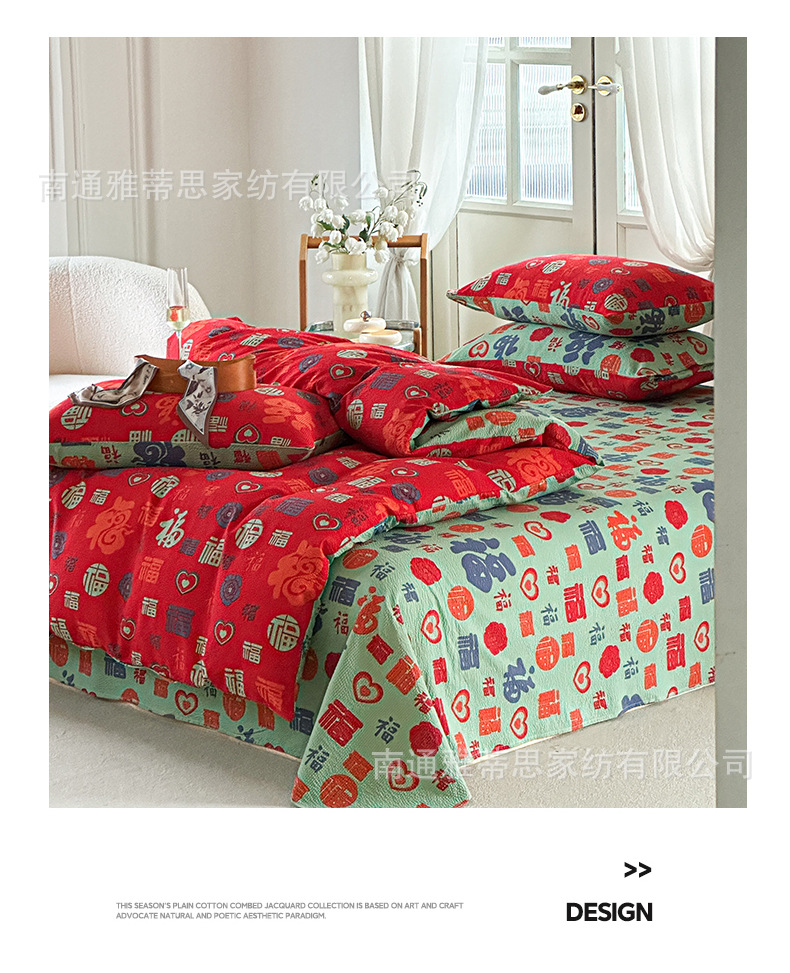 百福棉二重糸シーツ一枚の大きな赤い結婚祝い綿ジャカード一枚三枚セットの通気吸汗