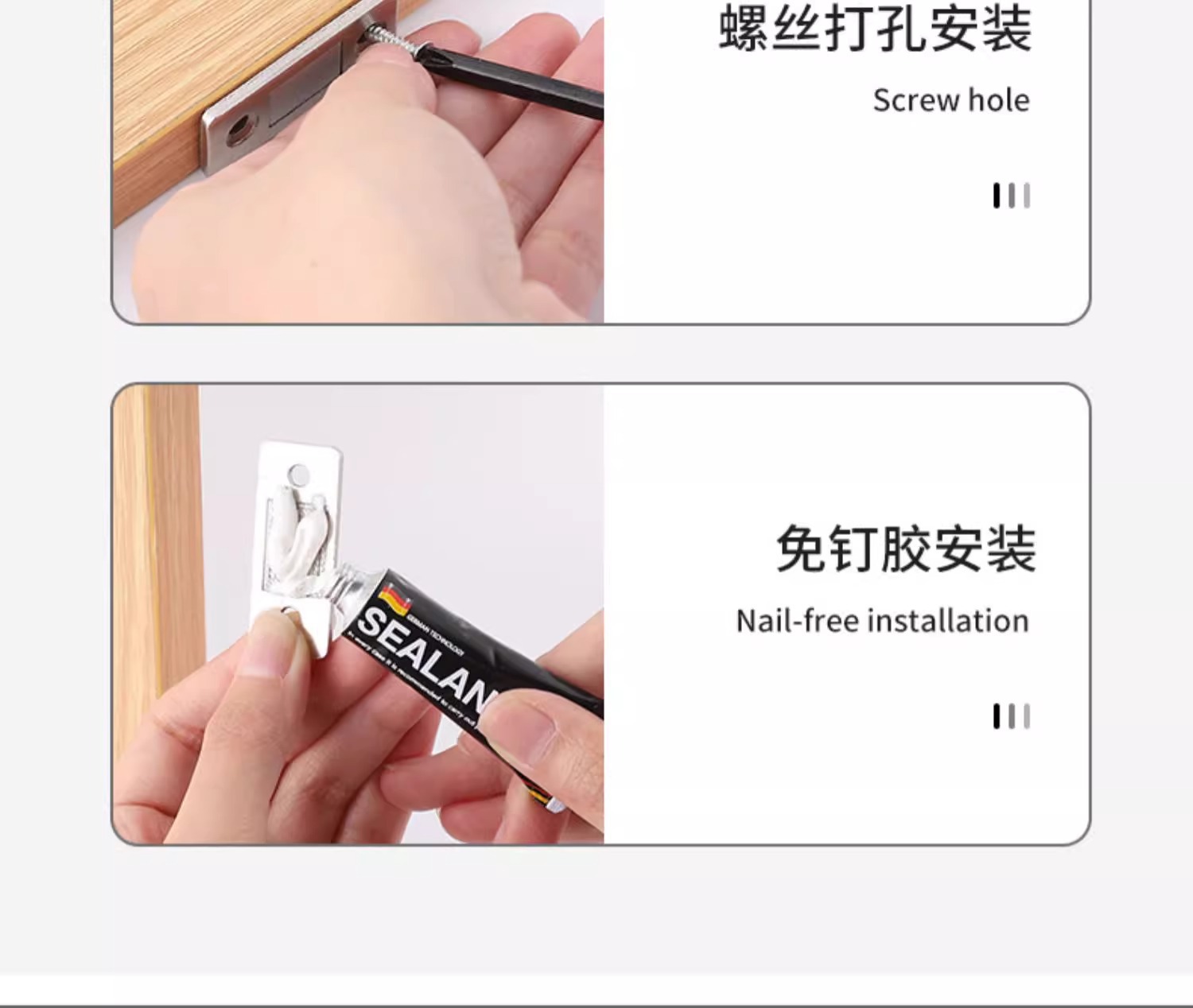 穴を開けない磁気吸引は引き戸のタンスの扉を押して引き出しのシールを吸い込みます。