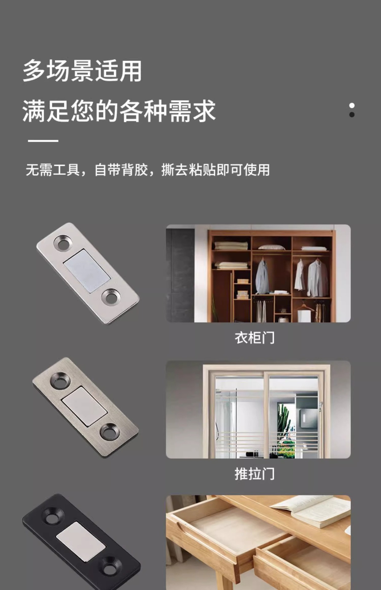 免打孔磁吸推拉门衣柜门自吸磁条贴片吸合器隐形移门磁铁强磁门吸