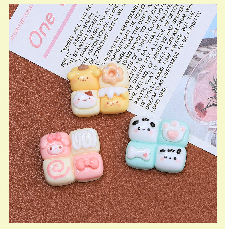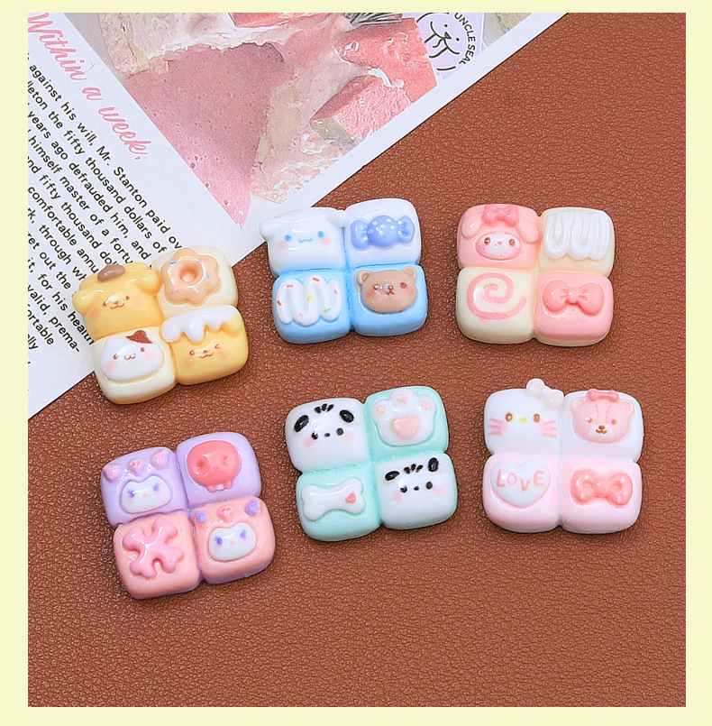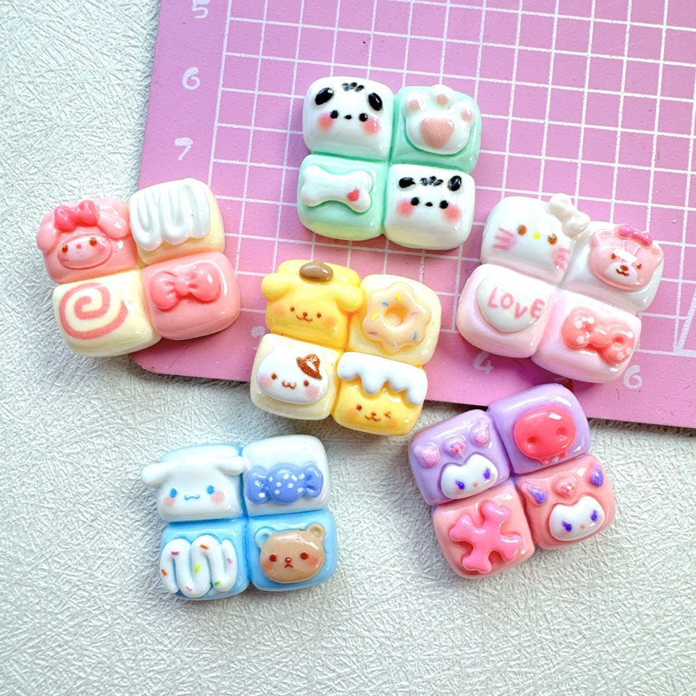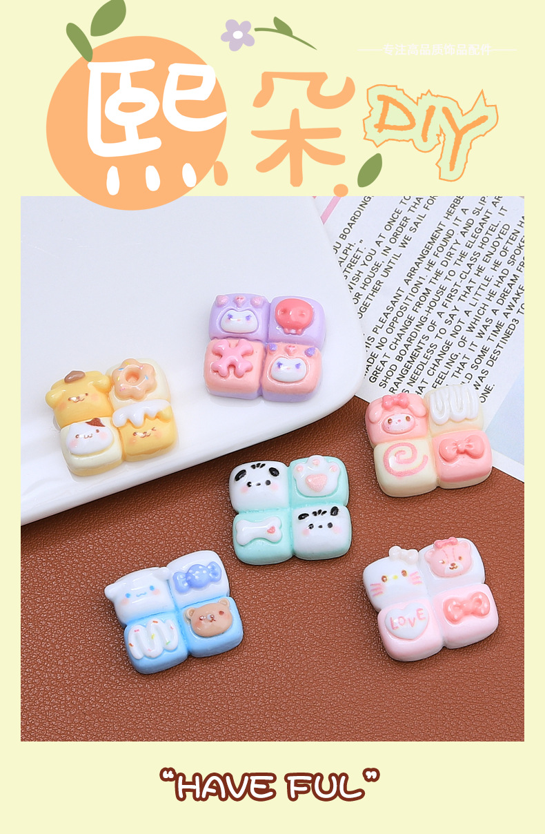 樹脂部品食游漫画クリームゴムdiyヘアクリップ穴靴ボタンアクセサリー装飾熊サンドイッチビスケット