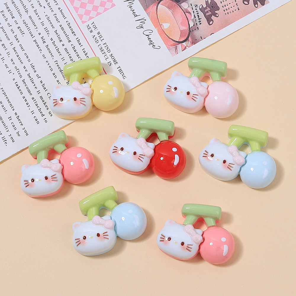 かわいいニャンニャンさくらんぼ食游漫画クリームゴムアクセサリー手作りdiy自作ヘアピンアクセサリー樹脂アクセサリー