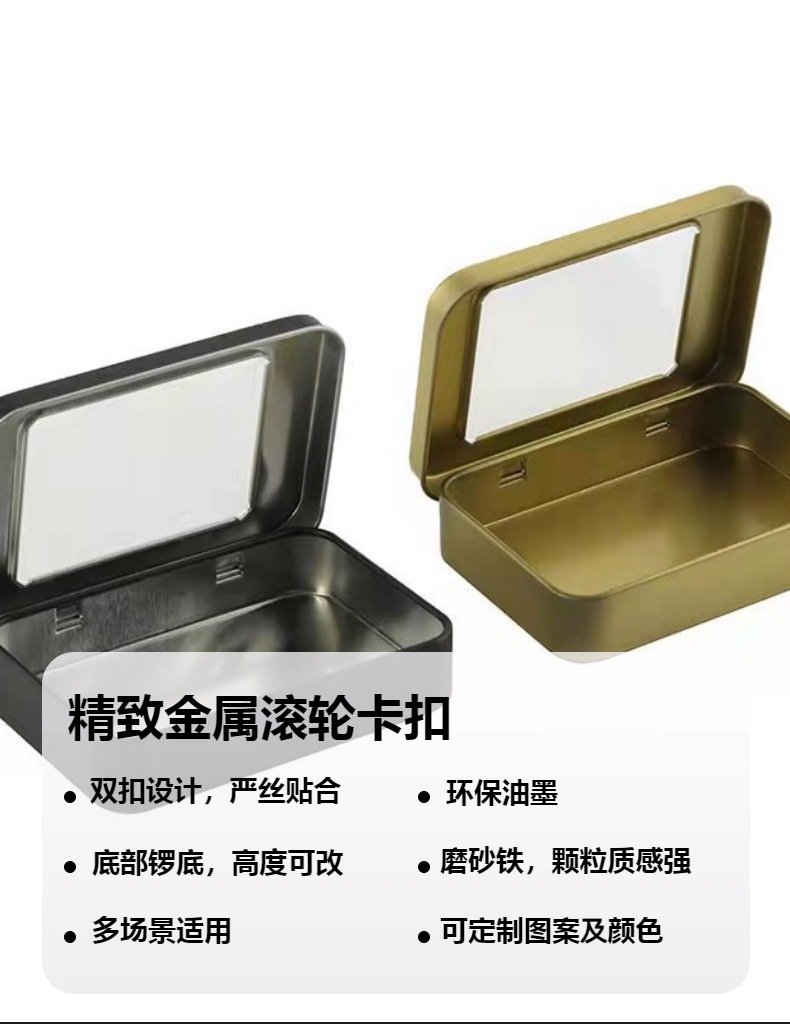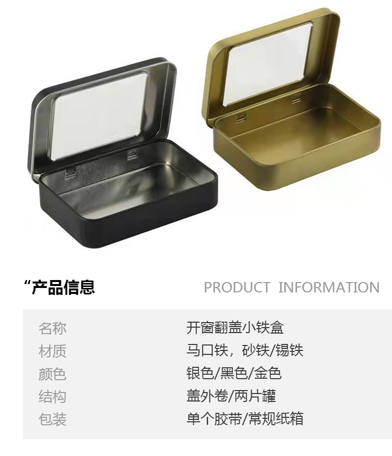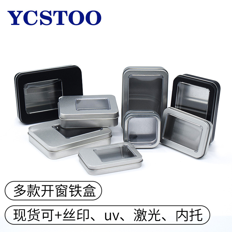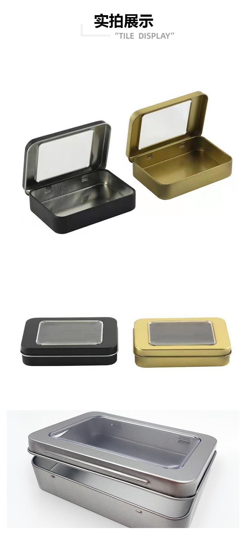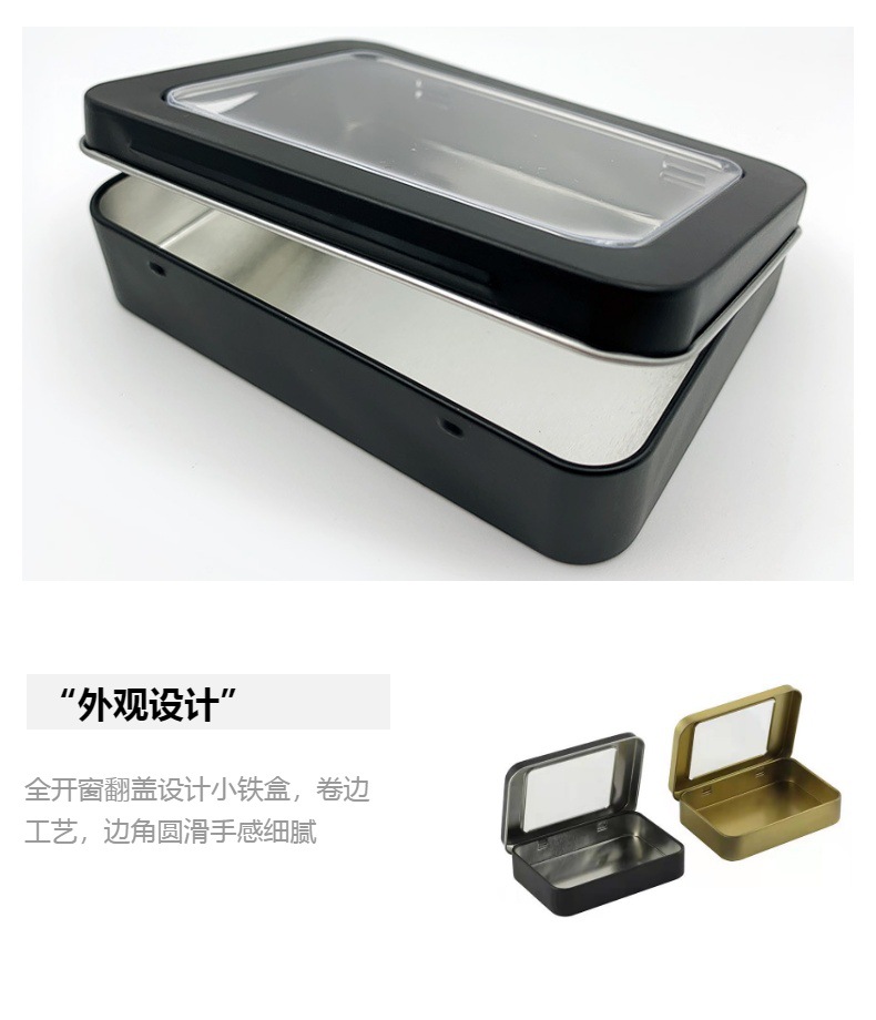 透明开窗铁盒DIY创意收纳卡片扑克U盘盒食品铁盒磨砂铁银色开窗盒