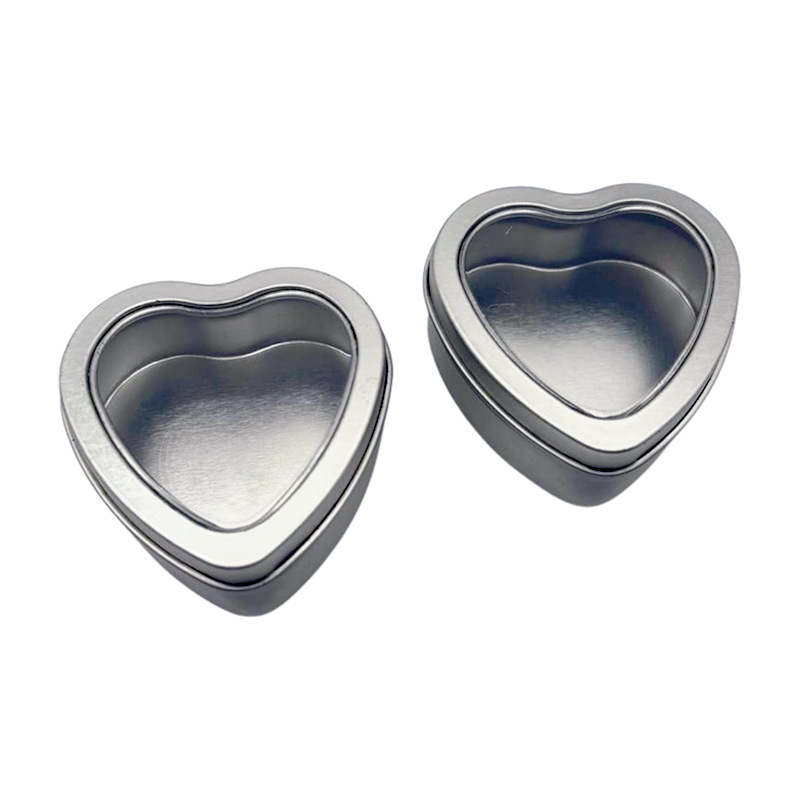 カスタマイズされたチョコレートブリキ缶キャンディーハート型窓付きブリキ缶ウェディングキャンディー缶イヤリングリング包装箱