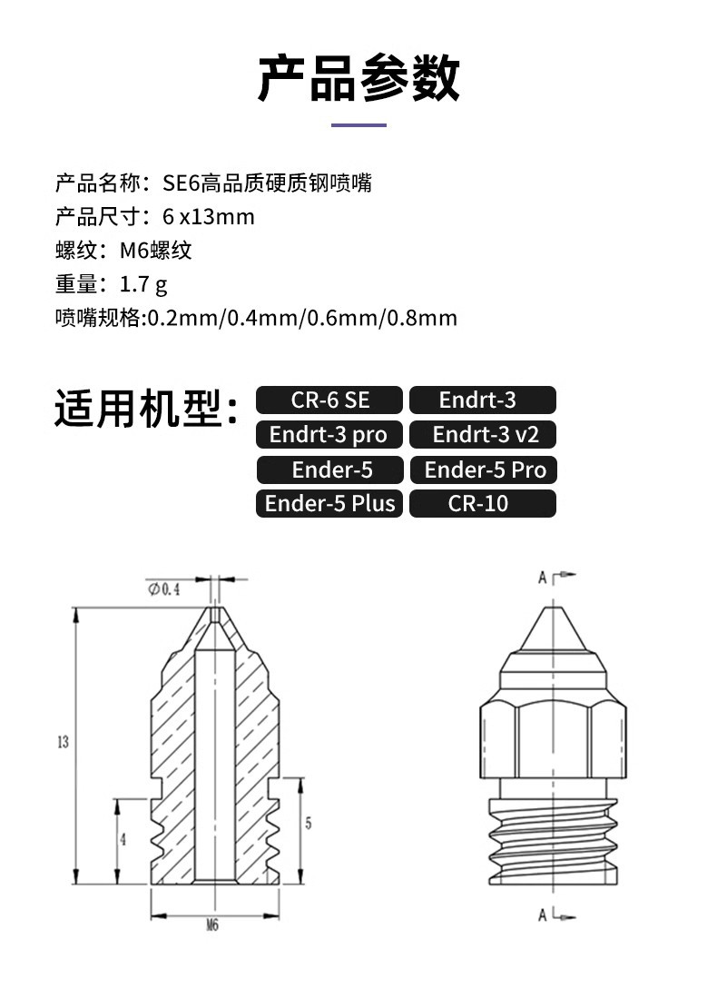 仕様 SE6 高品質硬質鋼ノズル 0.2MM,SE6 高品質硬質鋼ノズル 0.4MM,SE6 高品質硬質鋼ノズル 0.6MM,SE6 高品質硬質鋼ノズル 0.8MM,SE6 高品質真鍮ノズル 0.2mm,SE6 高品質真鍮ノズル 0.4mm,SE6 高品質真鍮ノズル 0.6mm,SE6 高品質真鍮ノズル 0.8mm,SE6 高品質真鍮ノズル 1.0mm,SE6 高品質銅メッキノズル 0.2mm,SE6 高品質銅メッキノズル 0.25mm,SE6 高品質銅メッキノズル 0.4mm,SE6 高品質銅メッキノズル 0.6mm,SE6 高品質銅メッキノズル 0.8mm,SE6 高品質銅メッキノズル 1.0mm