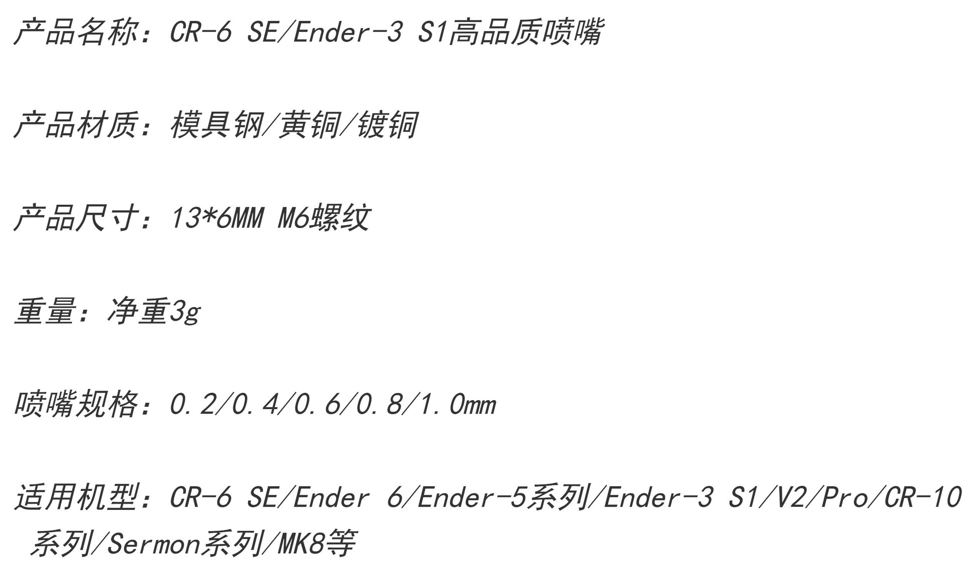 CR-6 SE Ender-3/5 S1高品質硬化鋼ノズルCR10/MK8耐高温真鍮ノズル