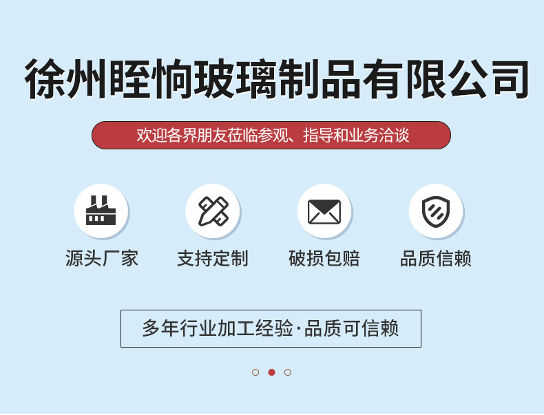 徐州眰恦玻璃制品有限公司是玻璃瓶制品定制和包装等产品专业生产加工的公司,拥有完整、科学的质量管理体系。徐州眰恦玻璃制品有限公司的诚信、实力和产品质量获得业界的认可。欢迎各界朋友莅临参观、指导和业务洽谈。