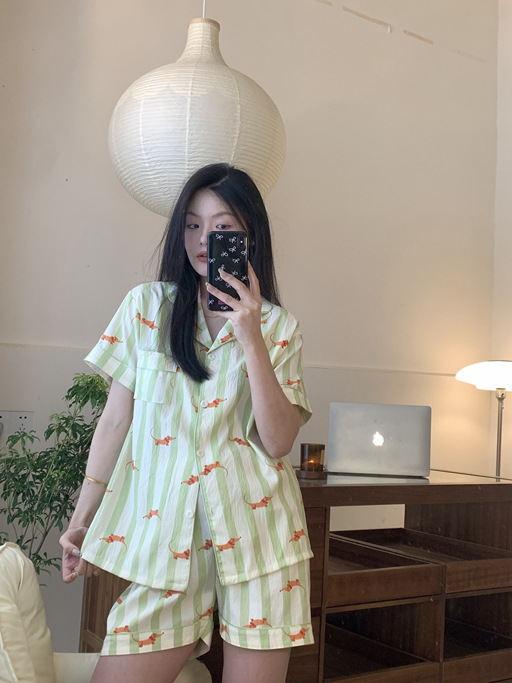 ins韓国フレッシュストライプパジャマレディース夏半袖ショーツスーツ大きいサイズクロスボーダーホーム服ハイエンド夏