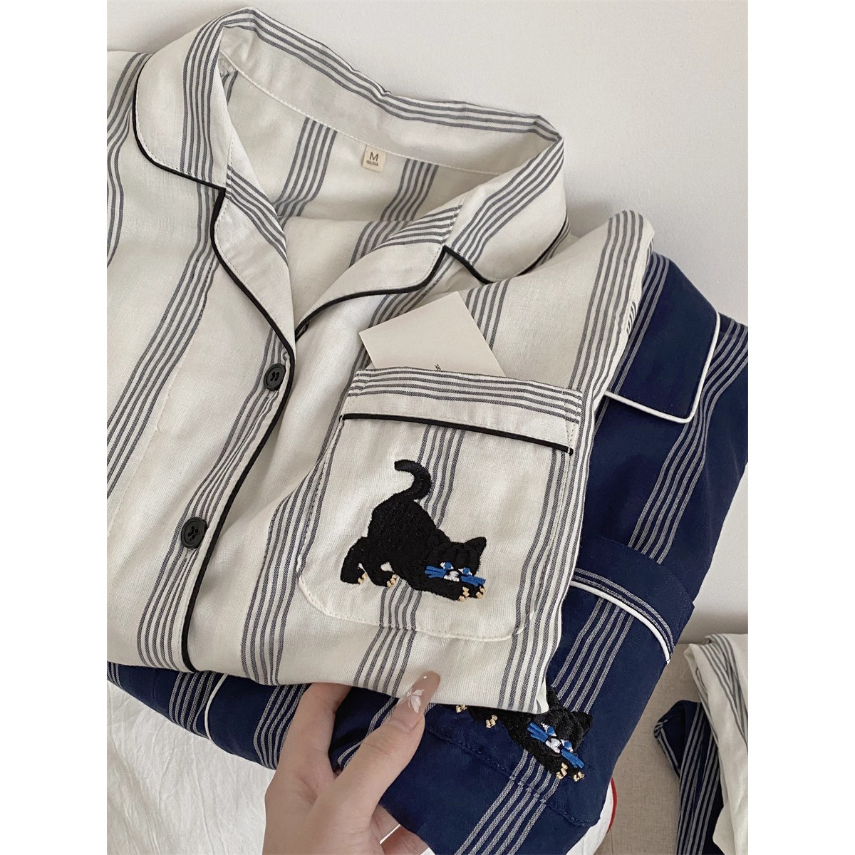 布帛ガーゼパジャマレディース长袖セット春秋学生カーディガンinsホームウェアゆったり可爱い高级感