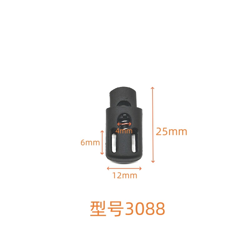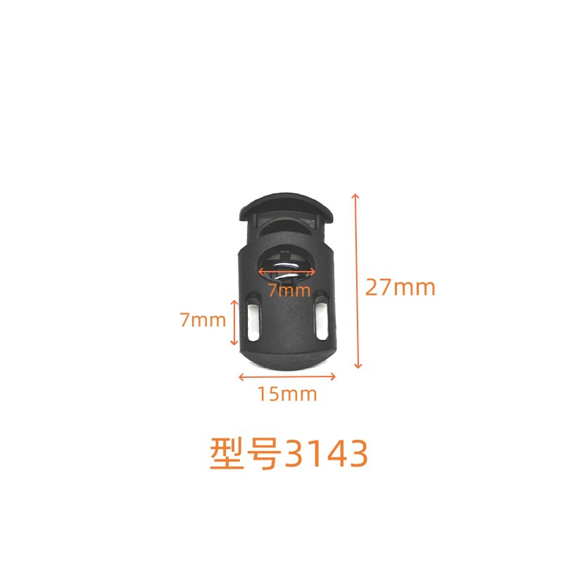 メーカー卸売りナイロンロープ2穴豚鼻ボタンプラスチックバネボタン帽子付き調節ロープボタン黒ロープボタン