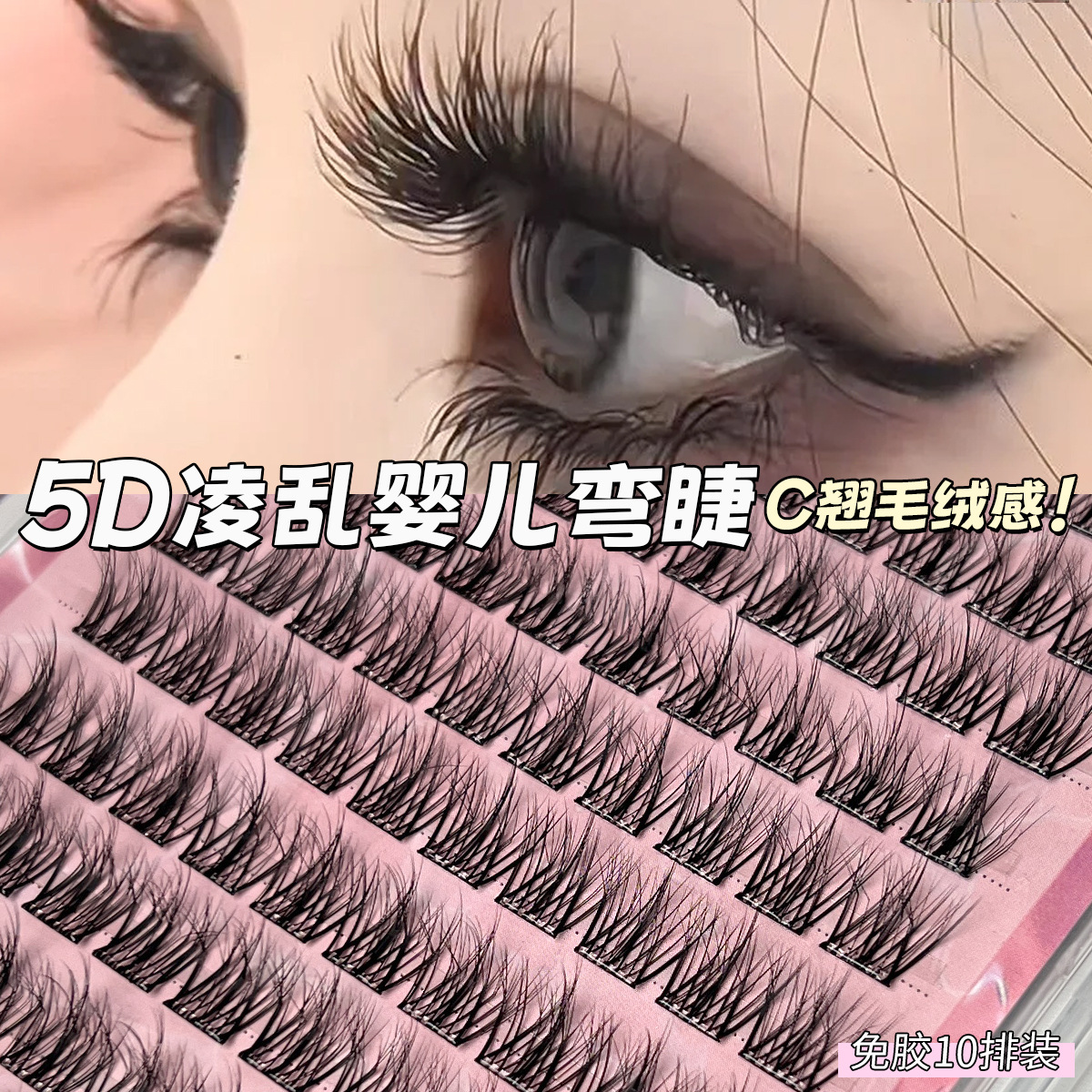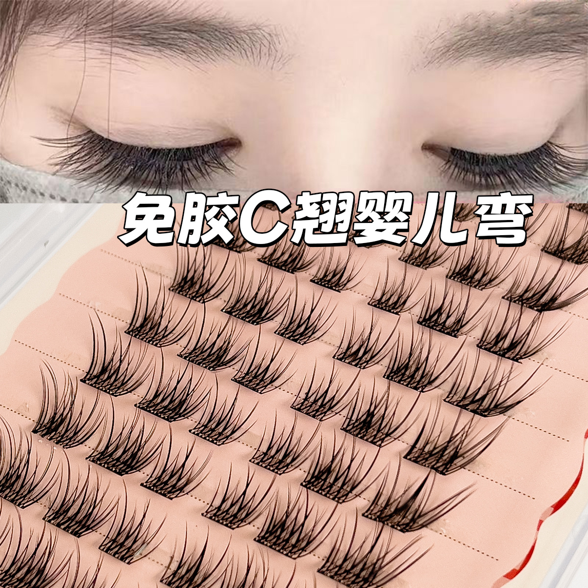 大容量轻斜飞免胶C翘婴儿弯假睫毛细黑梗卷翘自然上镜单簇眼睫毛